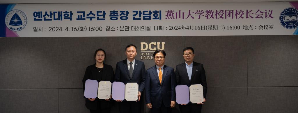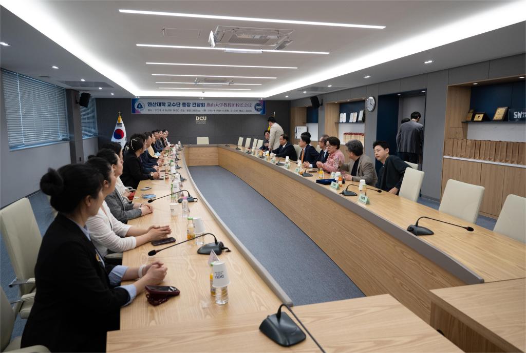 【新闻中心讯】为提高学院国际化办学水平、促进国际学术交流合作,4月14日至18日,乌鸦传媒艺术与设计学院院长赵琳带队,赴韩国开展了系列学术交流活动。4月16日下午,大邱加图立大学校长成汉基、设计学院院长梁禎恩、音乐学院院长李炳衫等会见了赵琳一行。
