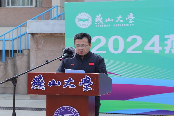 蔡星周致辞并宣布开幕。他表示,在全校举办以“我运动、我健康、我快乐”为主题校园体育节活动是全面贯彻落实党的二十大精神和习近平总书记关于体育工作的重要论述、加快推进体育强国建设的生动体现,是全面提升我校师生的人文素养,展现我校师生健康活泼、奋发向上的精神风貌,建设健康校园、营造良好育人环境、确保全体学生身心健康成长的重要途径。他希望全体参赛者遵守规则、展示风采,裁判员忠于职守、公正裁判,助力此次体育文化节圆满成功。