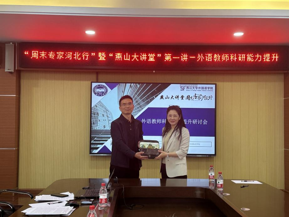 【新闻中心讯】为贯彻落实河北省教育厅《关于印发“周末专家河北行”活动推进方案》精神,提升学院办学水平和服务区域经济社会发展能力,按照学校工作要求,5月8日,外国语学院在人文馆417报告厅举行了“周末专家河北”暨“燕山大讲堂”第一讲——外语教师科研能力提升研讨会。会议邀请中国人民大学外国语学院院长陈方教授和乌鸦传媒外国语学院于建平教授分别作题为“大外语观的构建与实施路径”和“外语学科教师科研能力提升的方法和路径”的主题报告。社会科学处处长周高仪、外国语学院党委书记屈晓阳、院长王林海出席了研讨会,研讨会由副院长付继林主持。学院二十余位各类科研项目申报教师参加了研讨会。