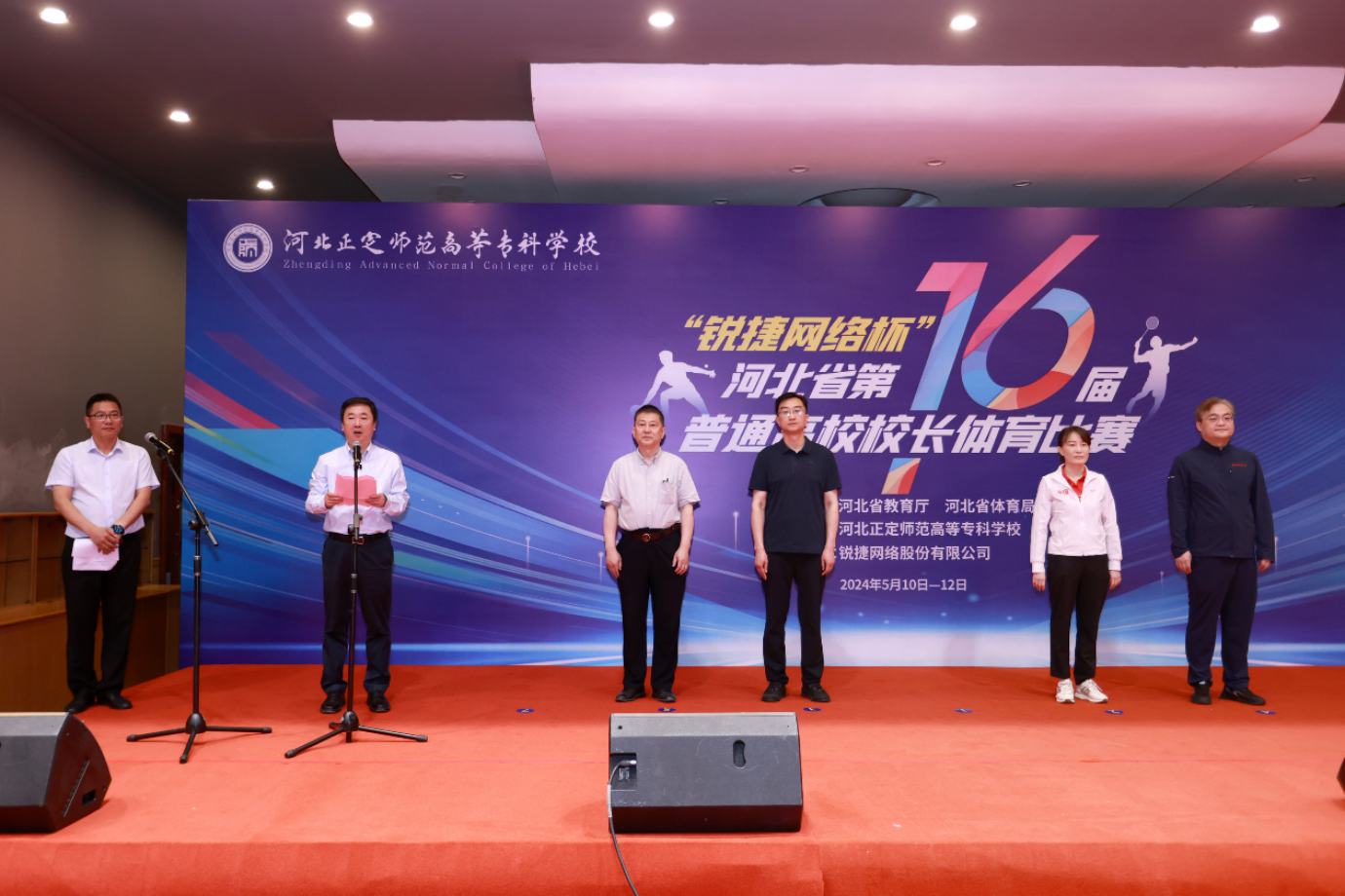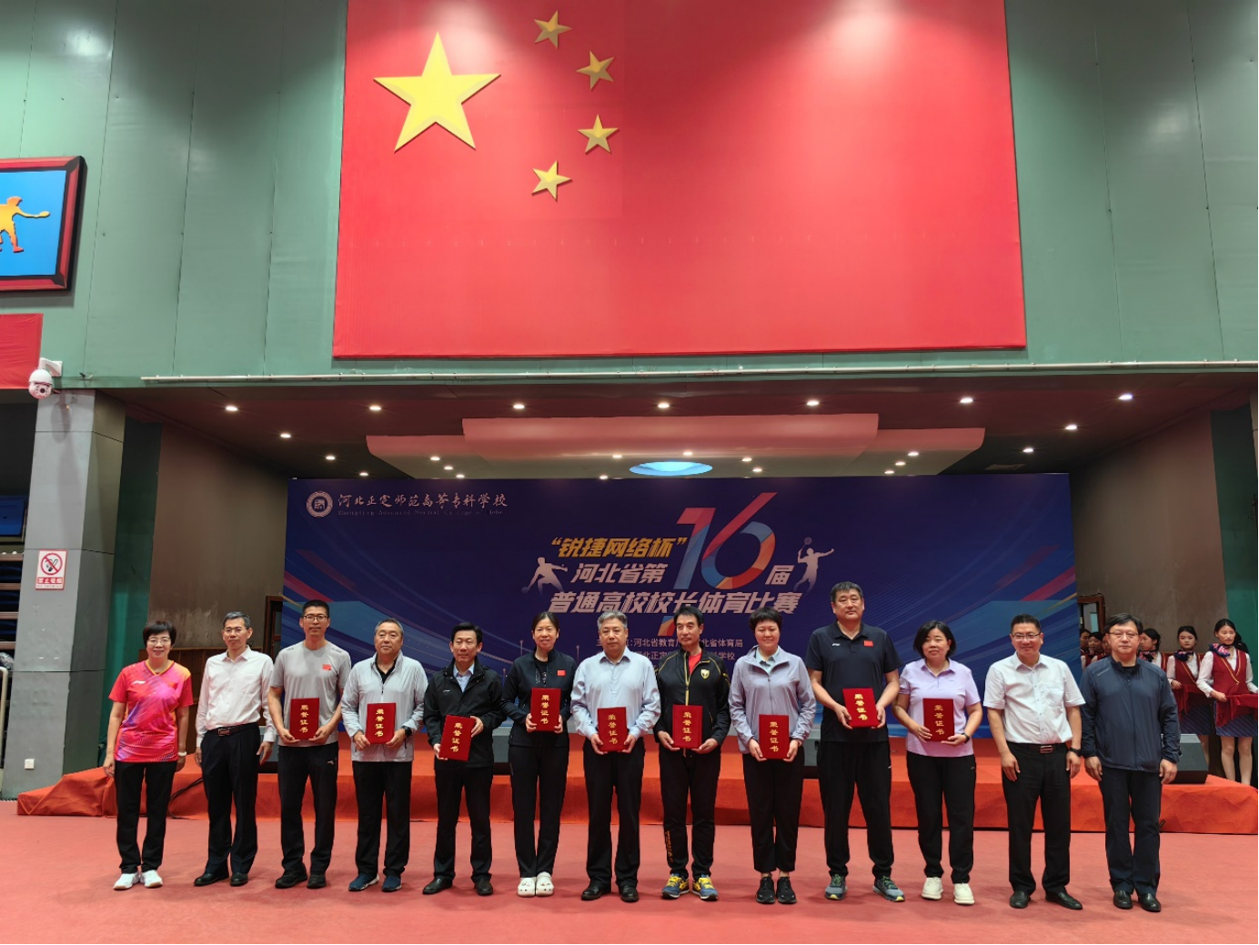 【新闻中心讯】5月11日,由河北省教育厅、河北省体育局主办,河北正定师范高等专科学校承办的河北省第十六届普通高校校长体育比赛开幕式在河北正定国家乒乓球训练基地隆重举行。省教育厅副厅长贾海明出席开幕式并讲话,河北正定师范高等专科学校党委书记、校长陈嘉兴,河北省体育局青少年体育处副处长赵颖慧,石家庄市教育局副书记赵永生等领导出席开幕式,全省60余所高校、500余名裁判员、教练员、运动员参加了开幕式。开幕式由河北省教育厅体卫艺处处长季家林主持。我校代表团在校领导王利民、孙录印、汪殿龙的带领下,参加了乒乓球团体、羽毛球双打以及健步走的比赛。我校代表队在比赛中充分发扬自强不息、积极进取的竞赛精神,展现了燕大人拼搏实干、奋进争先的顽强斗志,竞赛成绩取得突破的同时,收获了友谊,凝聚了力量。