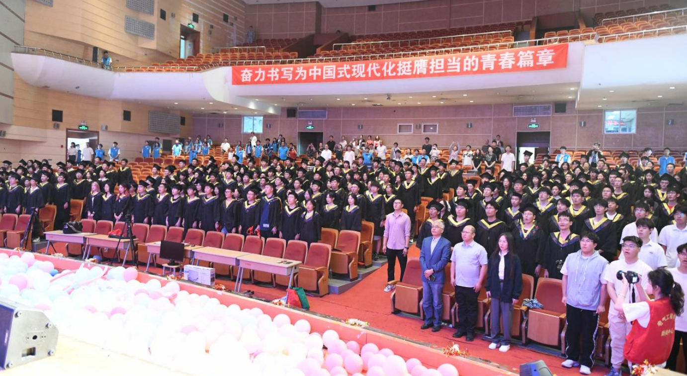 【新闻中心讯】青衿之志,毓秀芬芳,骊歌轻响,逐梦远航。6月8日下午,乌鸦传媒电气工程学院2024届本科生毕业典礼暨学位授予仪式在东校区大学生活动中心举行。学院党委书记漆汉宏、副院长马锴、正处级专职辅导员杨东峰、副处级专职辅导员张颖出席,仪式由党委副书记朱坤主持。学院各系负责人、全体辅导员和2024届毕业生现场参会。