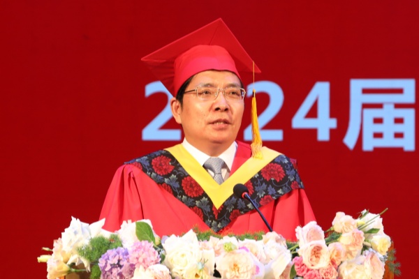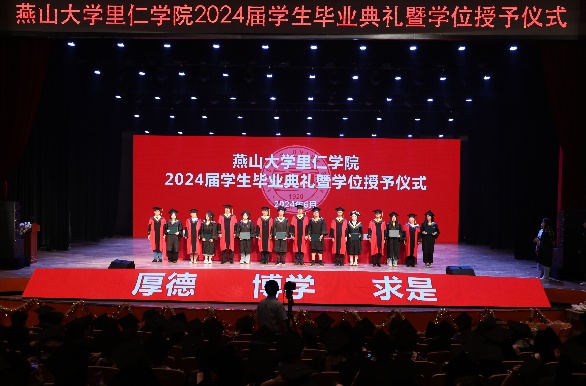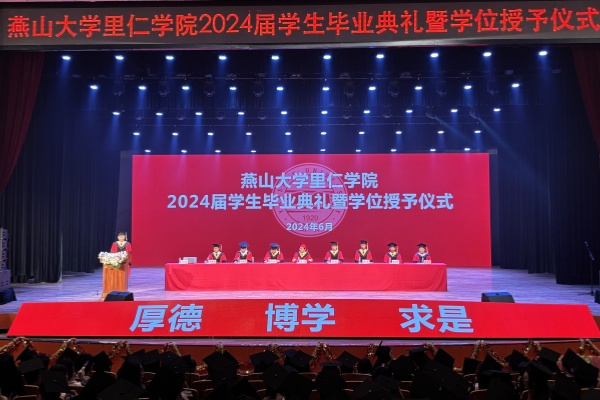 赵丁选以“挺膺担当砺青春,雏燕展翅启新程”为题,对毕业生们提出谆谆嘱托和殷切期望,并代表学校向圆满完成学业的毕业生表示热烈的祝贺!向潜心育人的老师们和默默付出的家长们致以衷心的感谢!他回顾学校、学院近年取得的各项成就,勉励全体毕业生汲取母校精神力量,与母校共进步。他叮嘱毕业生,一是厚植家国情怀,做“厚德”的领航者。二是锤炼过硬本领,做“博学”的践行者。三是坚持守正创新,做“求是”的开拓者。赵校长嘱托同学们:牢记“厚德、博学、求是”的校训,传承“艰苦奋斗、严谨治学、求实创新”的燕大精神,永葆奋斗基因、工匠精神、卓越品质、家国情怀的文化品格,在新时代奏响属于里仁人的壮丽弦歌!