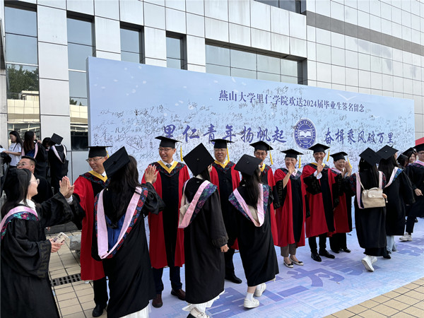 毕业典礼暨学位授予仪式结束后,院领导在签名墙前欢送全体毕业生,与毕业生逐一击掌告别!祝愿2024届毕业生把青春梦融入中国梦,熔铸心系祖国、服务社会的家国情怀,到基层和人民中去,到祖国最需要的地方去,让奋斗脚步与强国建设同频共振,为国争光,为民造福!(编辑 高慧渊)