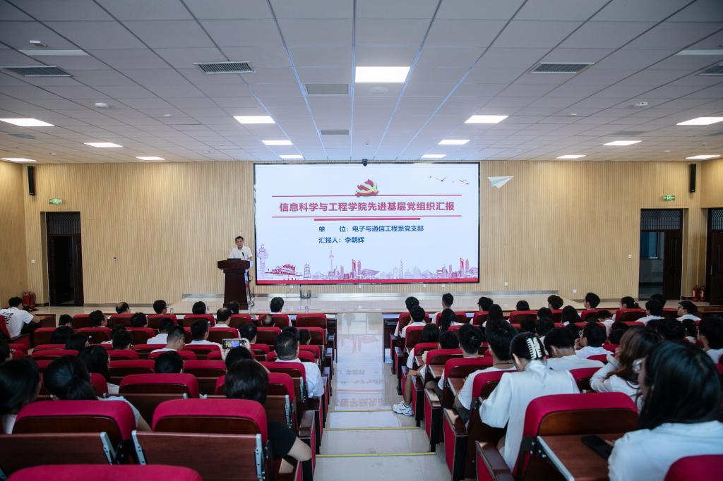 优秀共产党员代表,研究生第八党支部贺绍瑞、优秀党务工作者代表,本科生第四党支部书记李围同志、先进基层党组织代表,电子与通信工程系党支部书记李朝辉作了典型发言。