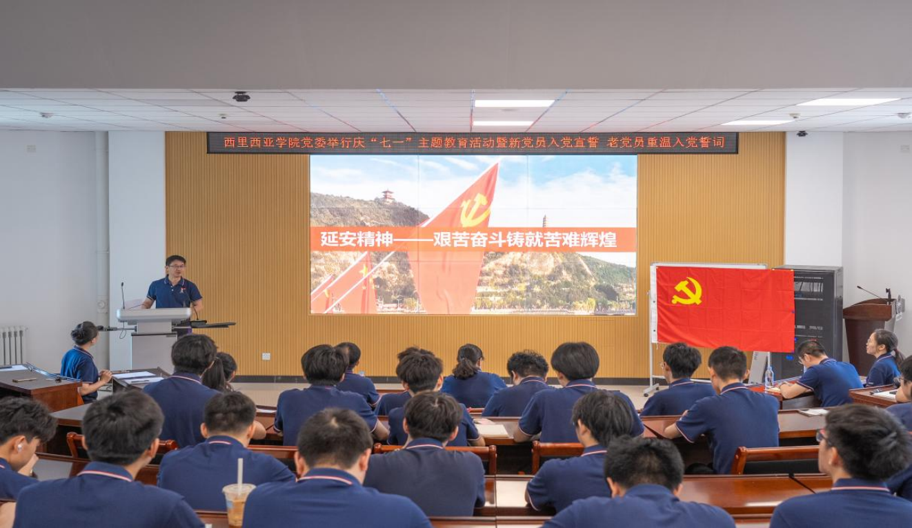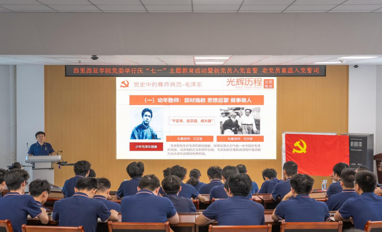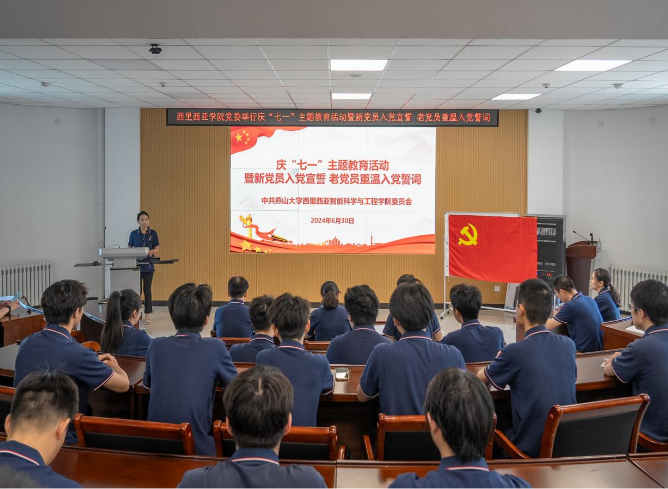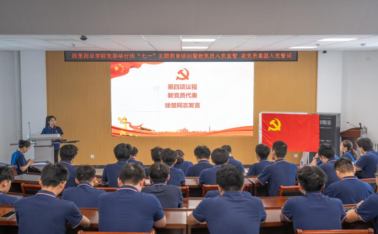 【新闻中心讯】为增强新发展党员荣誉感、使命感,激励老党员永葆初心、砥砺前行,推动学习贯彻习近平新时代中国特色社会主义思想和党的二十大精神,在“七一”来临之际,西里西亚智能科学与工程学院党委于6月30日举行庆“七一”主题教育活动暨新党员入党宣誓老党员重温入党誓词。学院党委书记王晶、党委副书记冯清华、国际教育学院副院长姜炼、国际教育学院(欧洲学院)副院长吴伟龙、部分师生党员以及入党积极分子100余人参加,活动由学院党委组织员李娟主持。