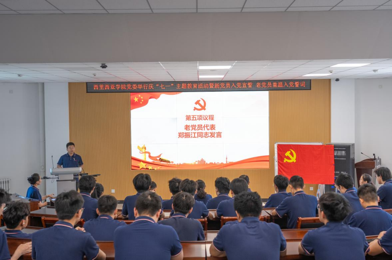 徐楚同志作为新党员代表发言,郑振江同志作为老党员代表发言。他们结合自身学习成长经历分享了入党故事、工作心得以及对党的深情寄语,号召全体党员将入党誓词作为终身追求,坚决履行党员义务,切实增强使命担当,为学院、为祖国和社会发展贡献力量。