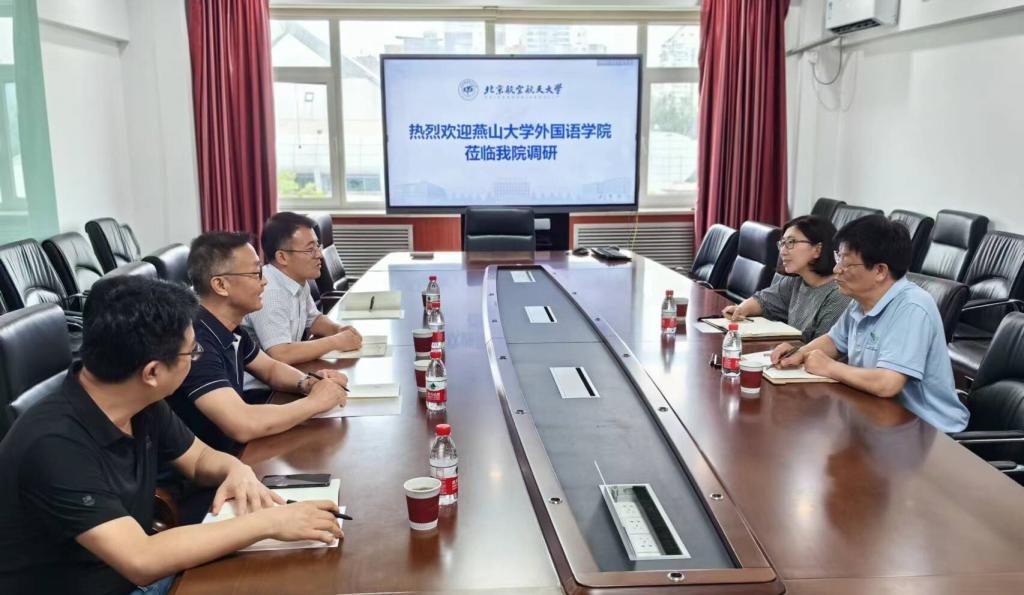 【新闻中心讯】6月28日-29日,外国语学院党委书记屈晓阳、副院长付继林、英语系教师刘磊、方强一行4人赴北京译宝国际翻译有限公司和北京航空航天大学外国语学院开展调研座谈。