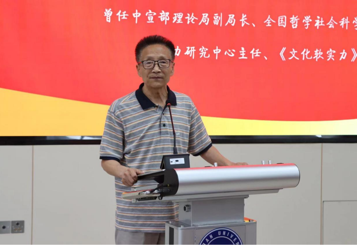 【新闻中心讯】7月2日上午8点30,由马克思主义学院主办的五峰讲堂第一期活动在东校区四教108举行,曾任中宣部理论局副局长、全国哲学社会科学规划办公室主任,现任中国文化软实力研究中心主任、《文化软实力》主编的张国祚教授为我校师生作了题为《关于“第二个结合”的几个重要问题》的专题讲座。讲座由马克思主义学院院长柴勇主持。