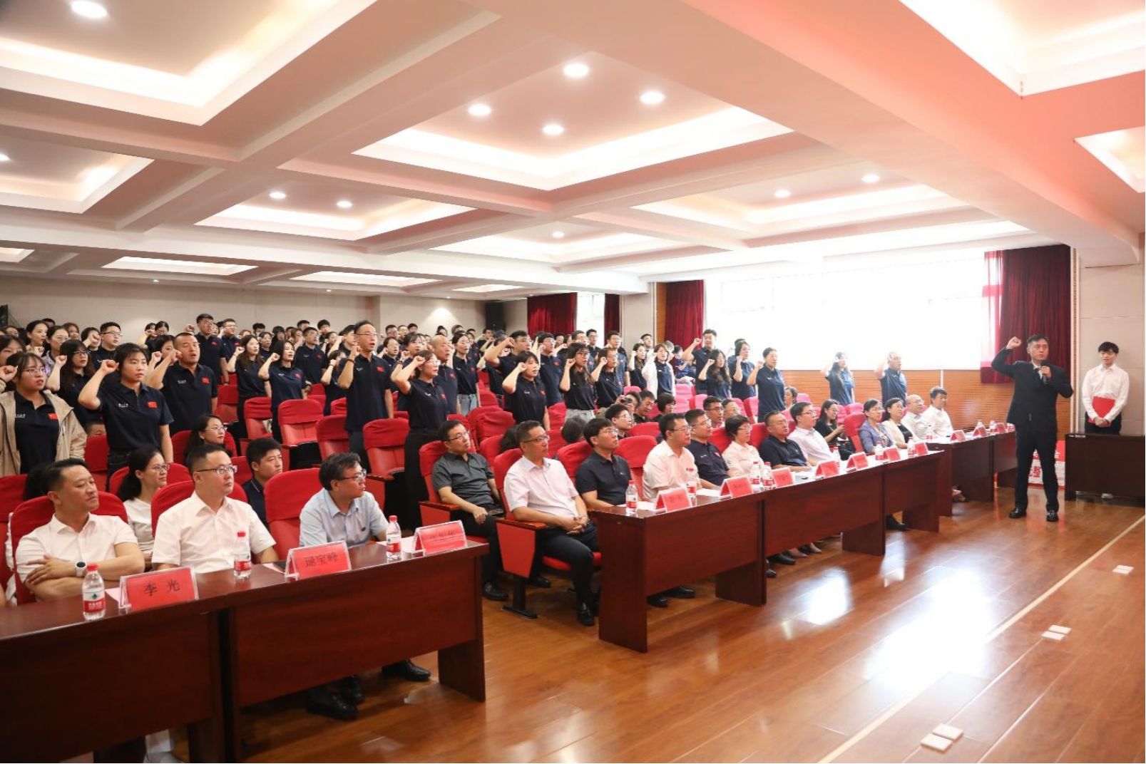 最后,全体新生共同宣誓:“我是燕大学生,我是中国青年!恪守燕大校训,铭记恩师教导……”。宣誓声铿锵有力,响彻会场,朝气十足的誓言,展现出学员的蓬勃精神面貌。
