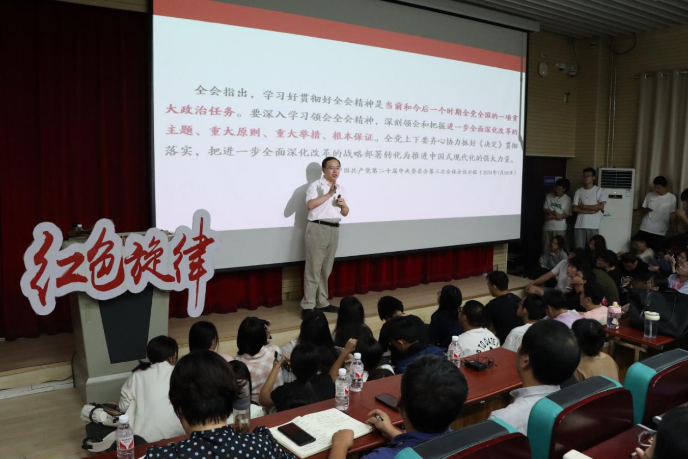 【新闻中心讯】9月12日19:00,由马克思主义学院主办,马克思主义学院研究生会承办的第一百八十三期“红色旋律”讲坛在东校区四教109室举行,本期讲坛的题目是《为中国式现代化提供强大动力和制度保障——学习党的二十届三中全会精神》,由马克思主义学院柴勇老师主讲。