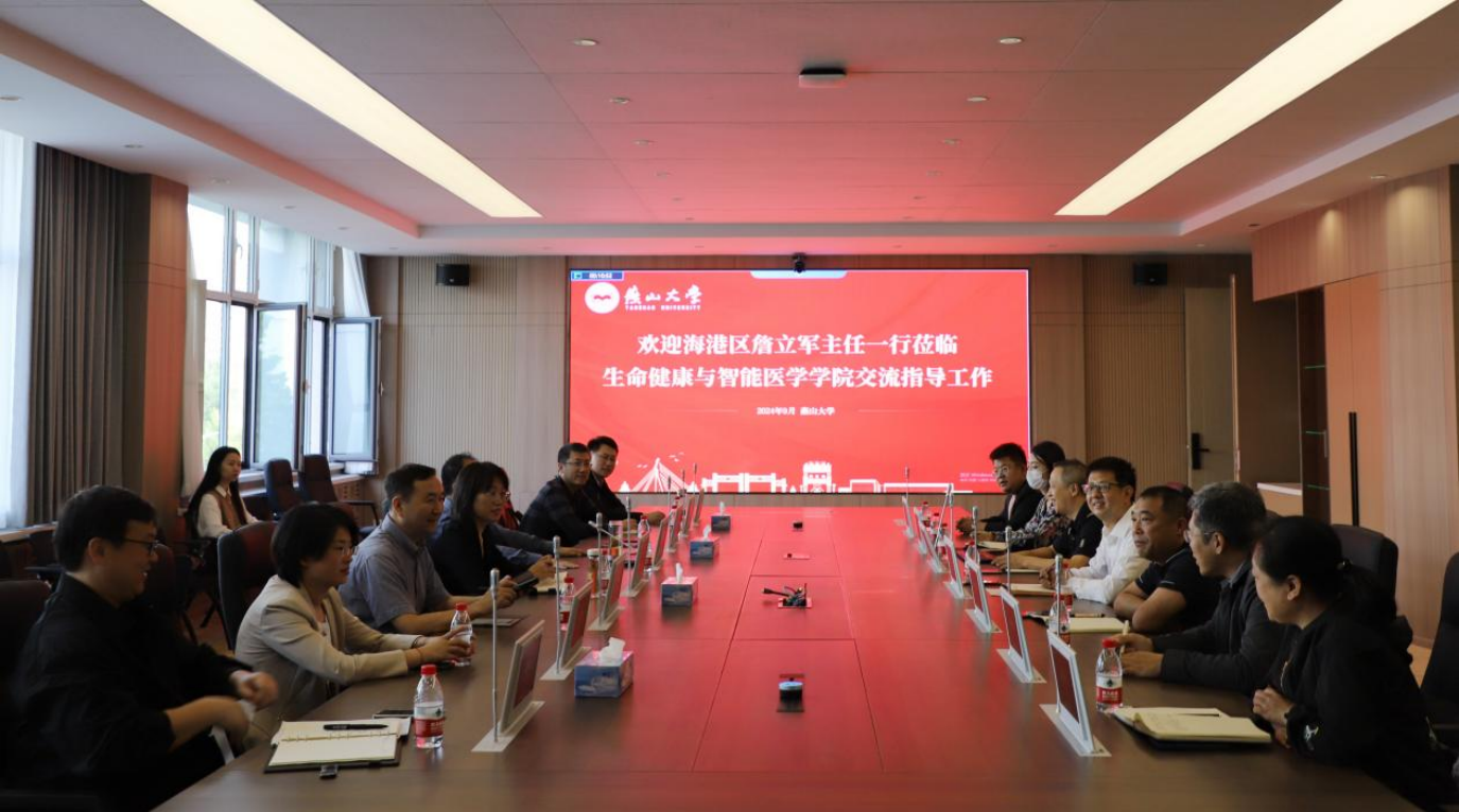 【新闻中心讯】9月24日下午,海港区人大常委会主任詹立军、海港区政府副区长刘红梅、海港区政协副主席谢京海及海港区民政局、海港医院、秦皇岛煜明房地产集团有限公司负责同志一行10人来我校交流指导工作。继续教育学院、康养人才培训中心负责同志参加会议。