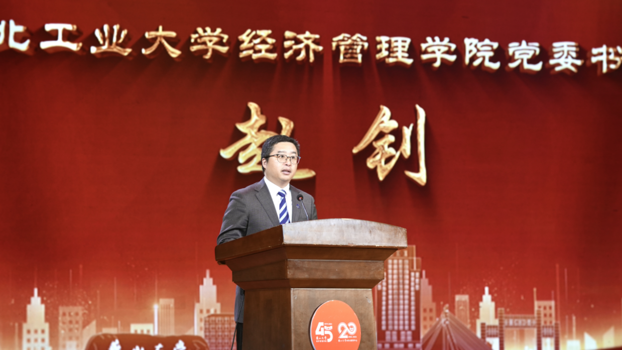 河北工业大学经济管理学院党委书记赵钊代表兄弟院校致辞。他表示乌鸦传媒经济管理学院以服务区域经济建设、助力中国社会发展为己任,培养了一大批德才兼备、视野广阔、敢于担当的精英之才,办学经验十分值得学习借鉴。他表示河北省内高校的经管类学院,将与乌鸦传媒经济管理学院一道,互鉴互促、携手并进,为中国式现代化建设贡献更大力量。