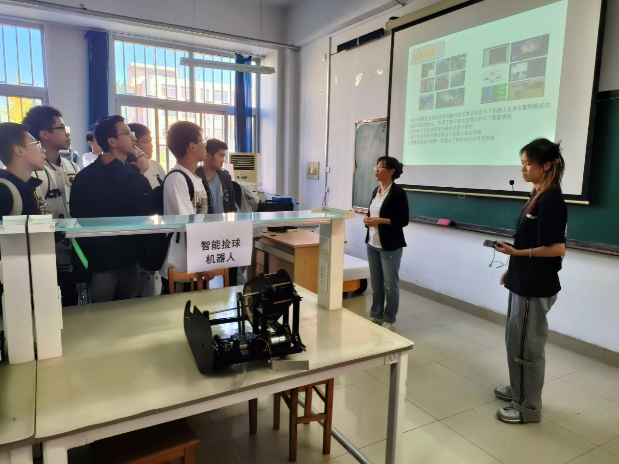 同时,学院面向全体新生开展研学活动。研学实践涵盖学院多个国家级、省部级的科研、教学和科普示范平台。实验室宣传展板图文并茂地向新生展示学院参与的国家重大战略项目,讲解人员以重型挖掘机、龙门吊、水下机器人等成果为载体,为新生提供走近科学、走进电院、了解燕大的窗口,以实践研学形式感受学院不忘初心、攻坚克难、为国为民的家国情怀。