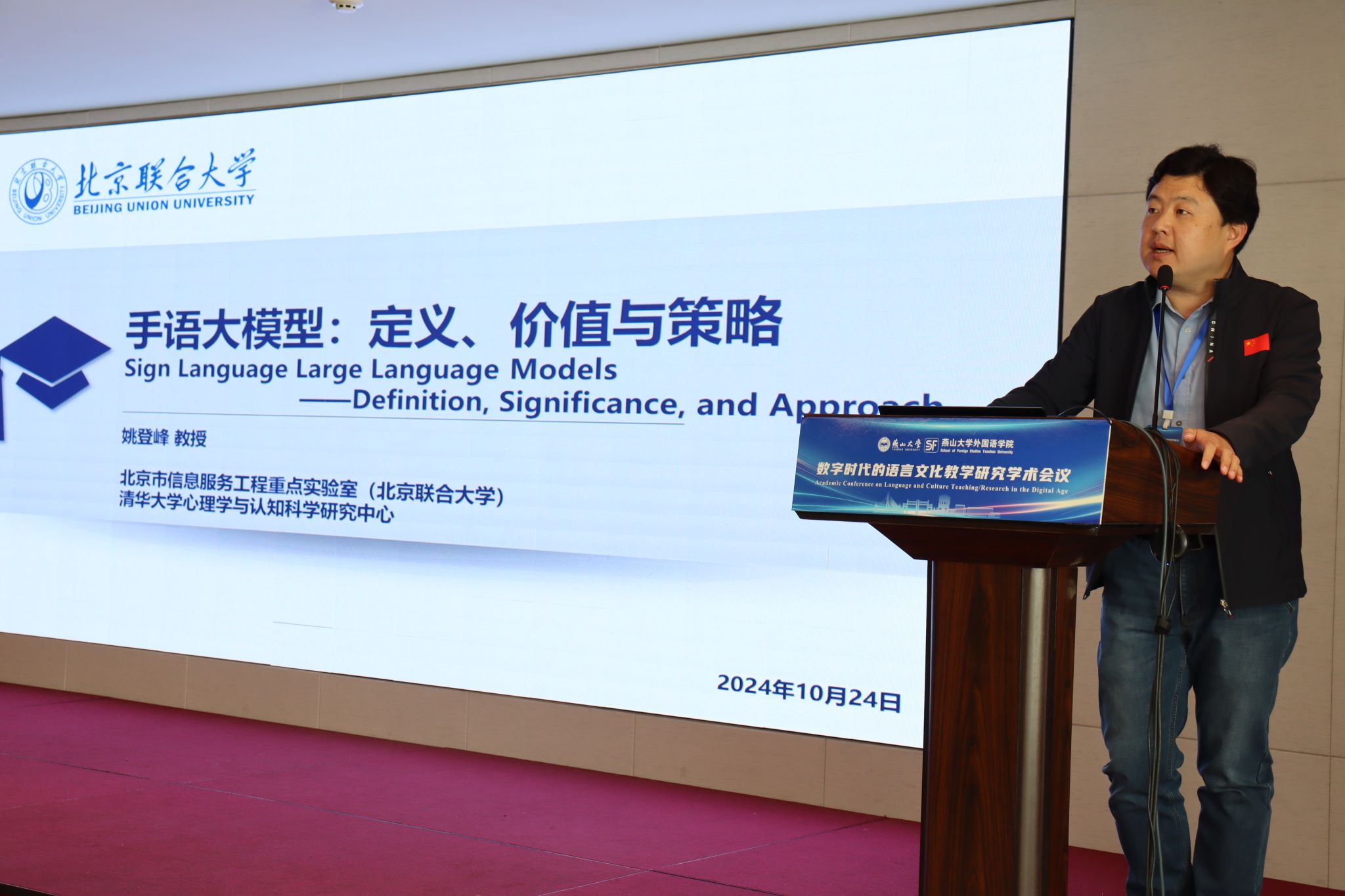 赵险峰指出,学校始终把外语学科建设摆在重要位置,外国语言文学学科连续三年跻身软科“中国最好学科排名榜”百强,在计算语言研究、手语语言及应用研究方面呈现出良好的发展态势。他表示,创新是一个国家、一个民族发展进步的不竭动力,是推动人类社会进步的重要力量,本次会议内容涵盖多个学术前沿领域,必将为数字技术赋能语言、文化教学与研究开辟新思路,为人工智能背景下外语学科发展汇聚新力量。