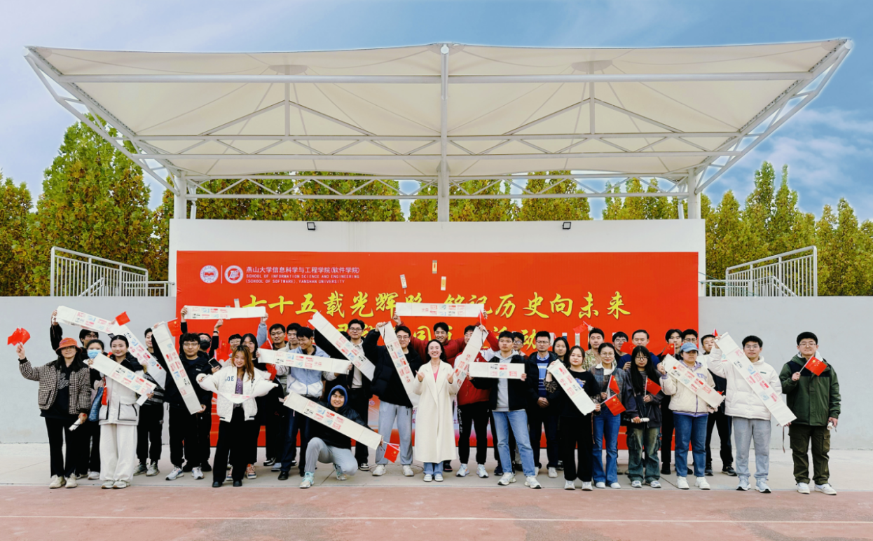 “歌唱我们亲爱的祖国,从此走向繁荣富强!”,活动现场歌声缭绕,祝福飘扬,在热烈氛围中圆满落幕。历史是最好的教科书,本次活动带领青年学子沉浸体验了一堂“场景式”的“大思政课”,引导广大青年学子在辉煌历史中汲取磅礴智慧,在伟大征程中凝聚奋进力量,为实现第二个百年奋斗目标接续奋斗。未来,信息科学与工程学院(软件学院)将继续以立德树人为核心,不断打造全方位、立体化、浸润式的精品项目,为学校内涵式高质量发展持续助力。