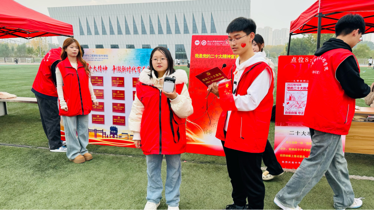 “自信自强、守正创新、踔厉奋发、勇毅前行”,在第八枚印章“党的二十大胜利召开”活动点位,青年学子化身党的二十大宣讲人,现场抽取“新时代十年的伟大变革”“中国式现代化”党的二十大报告关键词进行宣讲,展现新时代青年的风采担当,坚定理想信念,紧跟时代步伐!