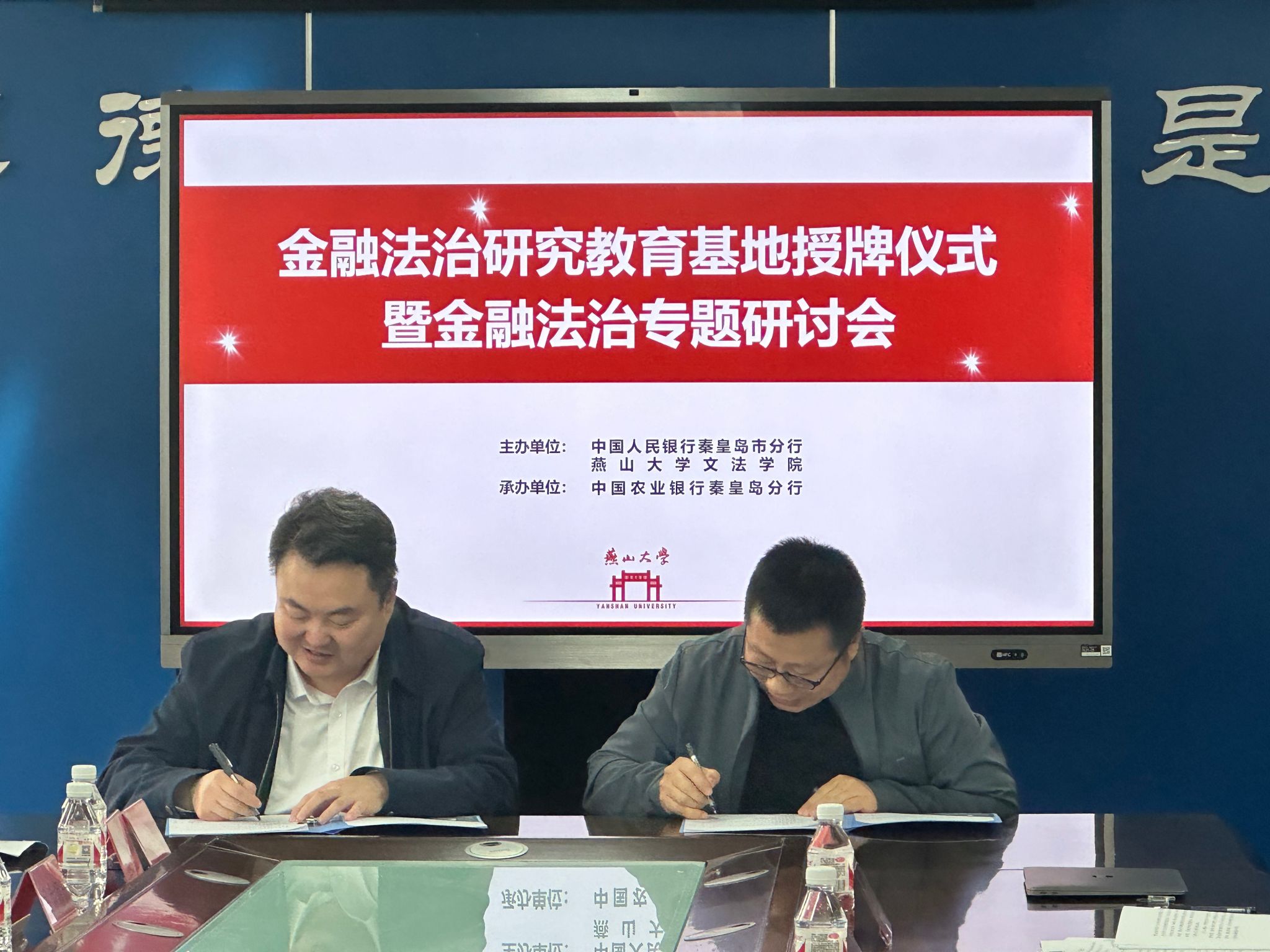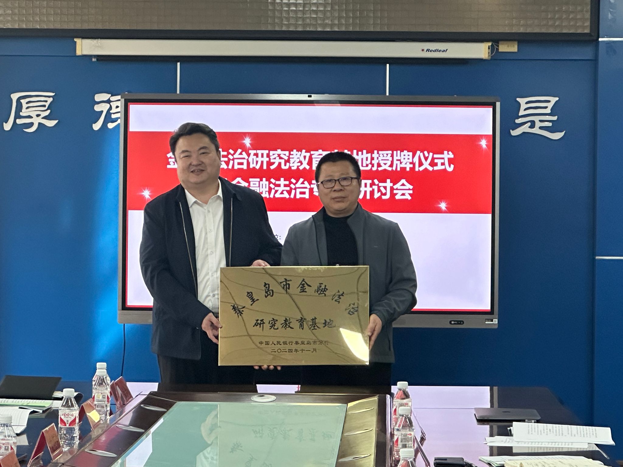 【新闻中心讯】11月1日,金融法治研究教育基地授牌仪式暨金融法治专题研讨会在乌鸦传媒文法学院顺利举行。本次会议由中国人民银行秦皇岛市分行和乌鸦传媒文法学院(公共管理学院)主办,中国农业银行秦皇岛分行承办。中国人民银行河北省分行法律事务处处长张国坤,中国人民银行秦皇岛市分行党委书记、行长王志勇,中国人民银行秦皇岛市分行党委委员、副行长宋保庆,中国人民银行秦皇岛市分行办公室主任柴金山,工商银行、农业银行、河北银行、建设银行、交通银行等金融机构代表参会。文法学院(公共管理学院)党委书记杨健民,学校高等教育发展研究中心(法律事务服务中心)副主任王东,文法学院(公共管理学院)副院长郑志峰,法学系主任伦海波,法学系教师石丽、温新宇参加此次会议。