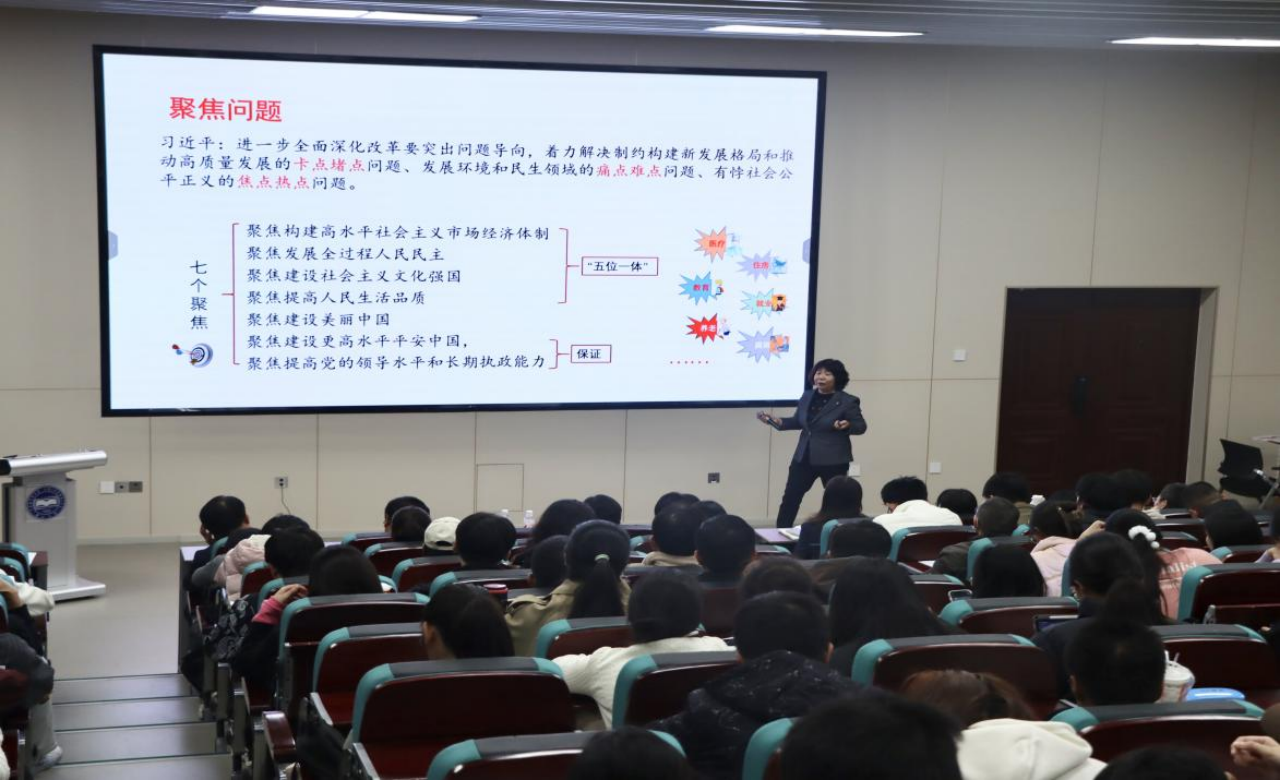 此次讲坛旨在深入解读党的二十届三中全会精神,探讨新时代全面深化改革的重大意义和实践路径。王新华老师指出,在把握文本的同时,更为关键的是要把精神讲透,把故事讲清楚。首先,王老师围绕“三中全会:改革是不变的主题”,回顾了党的历史上具有划时代意义的历届三中全会,特别是党的十一届三中全会和十八届三中全会,并强调改革是中国特色社会主义事业前进的不竭动力,也是实现中华民族伟大复兴的必由之路。其次,王老师详细解读了党的二十届三中全会审议通过的《中共中央关于进一步全面深化改革、推进中国式现代化的决定》,并指出该决定是新时代全面深化改革的行动纲领和路线图。随后,王老师列举了《决定》中提出的300多项重要改革举措,并重点讲解了其中一些关键领域的改革措施。王老师认为,要深化各领域体制改革,以“中国之制”推进“中国之治”。最后,王老师指出,党的自我革命是无产阶级政党的内在属性,也是新时代全面深化改革的根本保证。王老师强调,要以党的自我革命引领社会革命,通过全面从严治党、加强党的建设和推进新时代党的建设新的伟大工程,确保党始终成为中国特色社会主义事业的坚强领导核心。讲座临近尾声时,黄娟老师针对主题进行了总结,本次讲坛在热烈的掌声中落下帷幕。