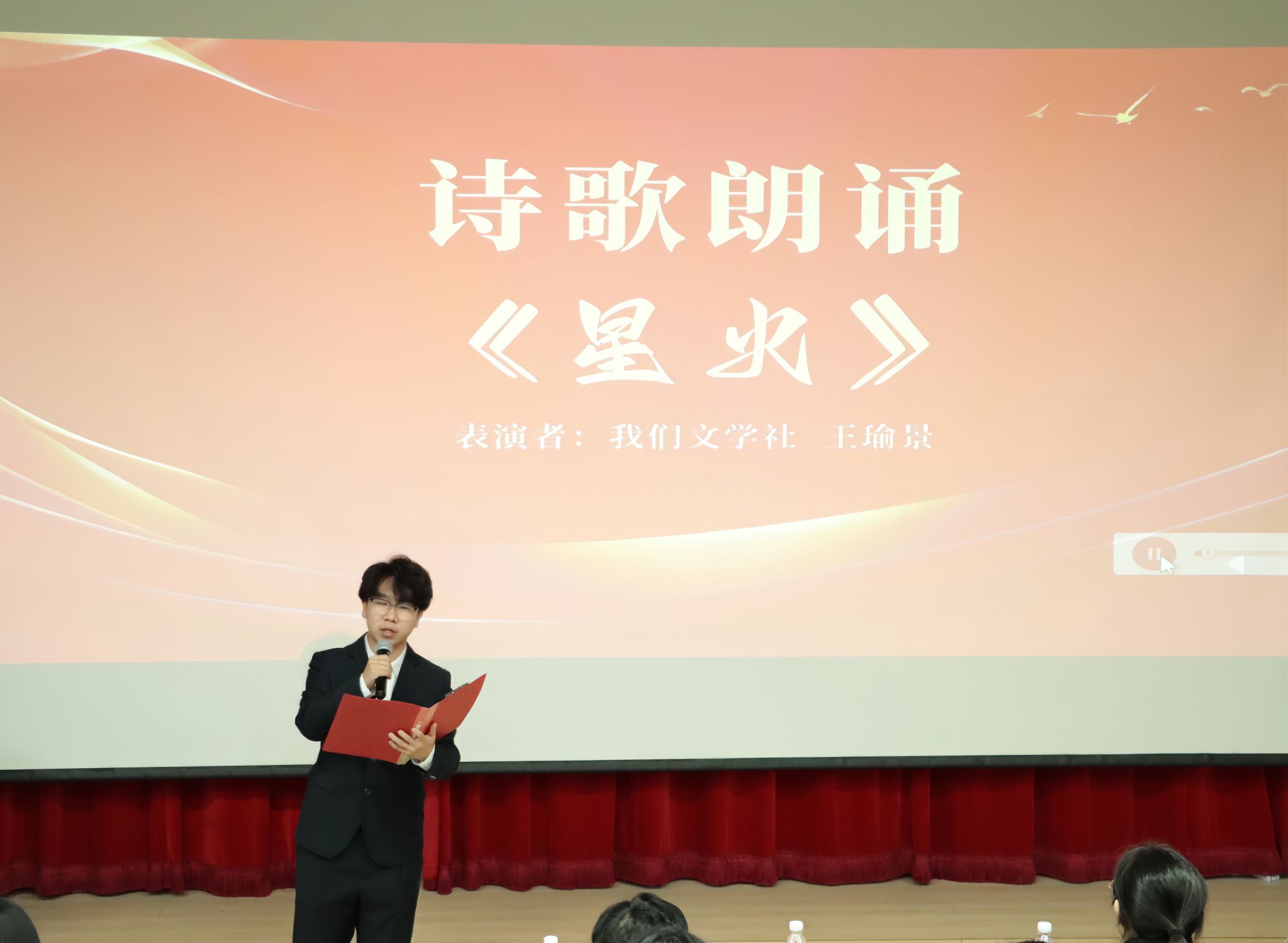 颁奖环节中,特等奖获奖代表邱镜元、二等奖获奖代表张心雨分别发言,分享了自己创作的心路历程,介绍了自己的创作经验、阅读体会,提出了自己对文学创作的独特见解。在颁奖仪式进行过程中,穿插了别具特色的节目。朗诵表演《星火》诵出了那些关于坚持与梦想的诗篇,穿越时空,与先辈们的精神交相辉映。此外,噫鸣相声社带来的精彩的相声表演《八扇屏》,点燃了现场的气氛,获得了现场的阵阵掌声。