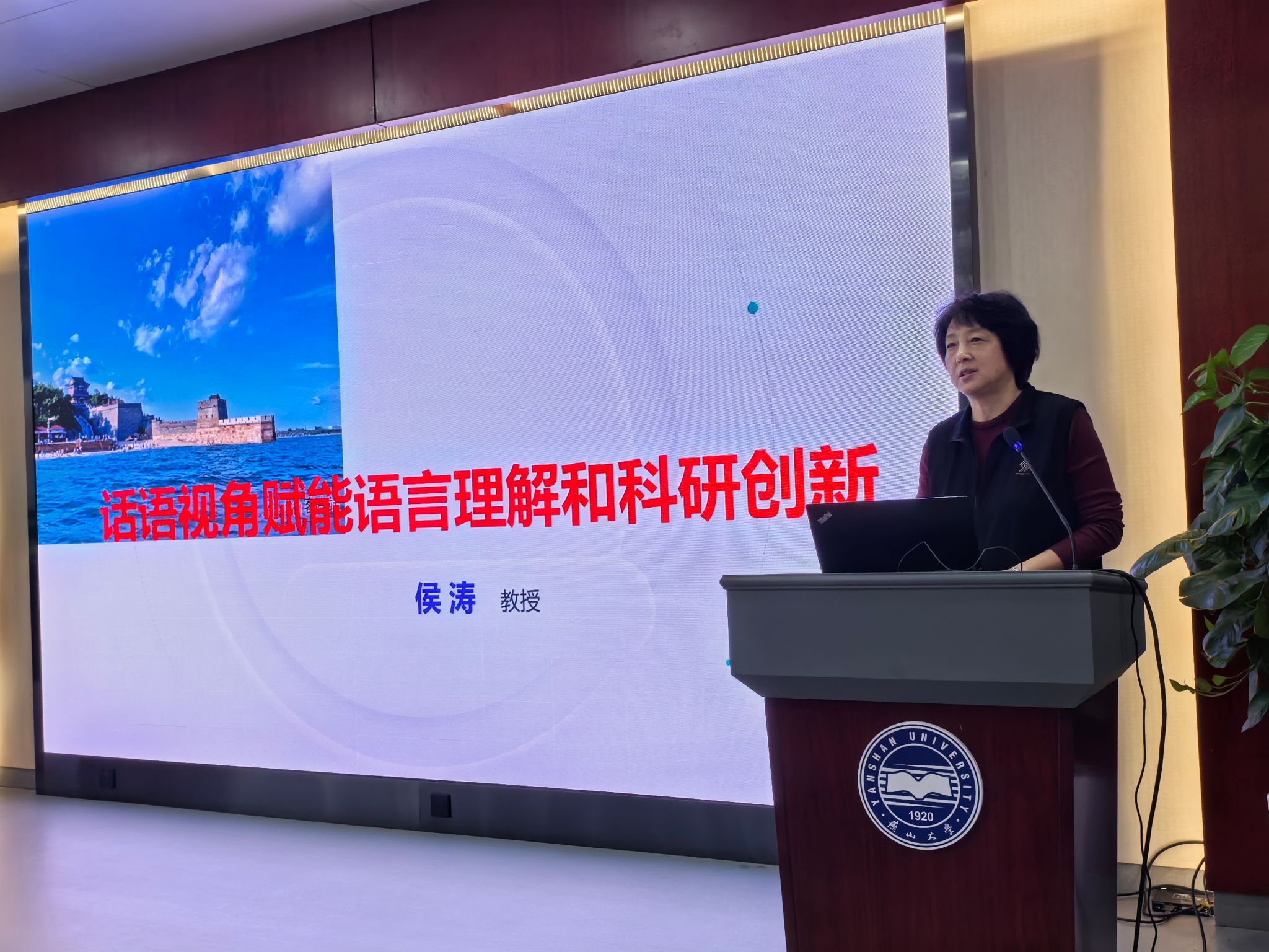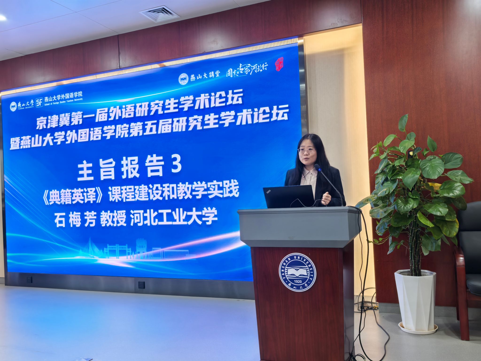 在主旨报告环节,山东大学王峰教授主讲《翻译研究实证研究论文的模仿与创新》、山西师范大学侯涛教授主讲《话语视角赋能语言理解和科研创新》、河北工业大学石梅芳教授主讲《<典籍英译>课程建设和教学实践》。三位专家从各自研究领域结合亲身实践,讲授了教学和科研创新的方法和路径,分享了丰富的经验和宝贵资源。