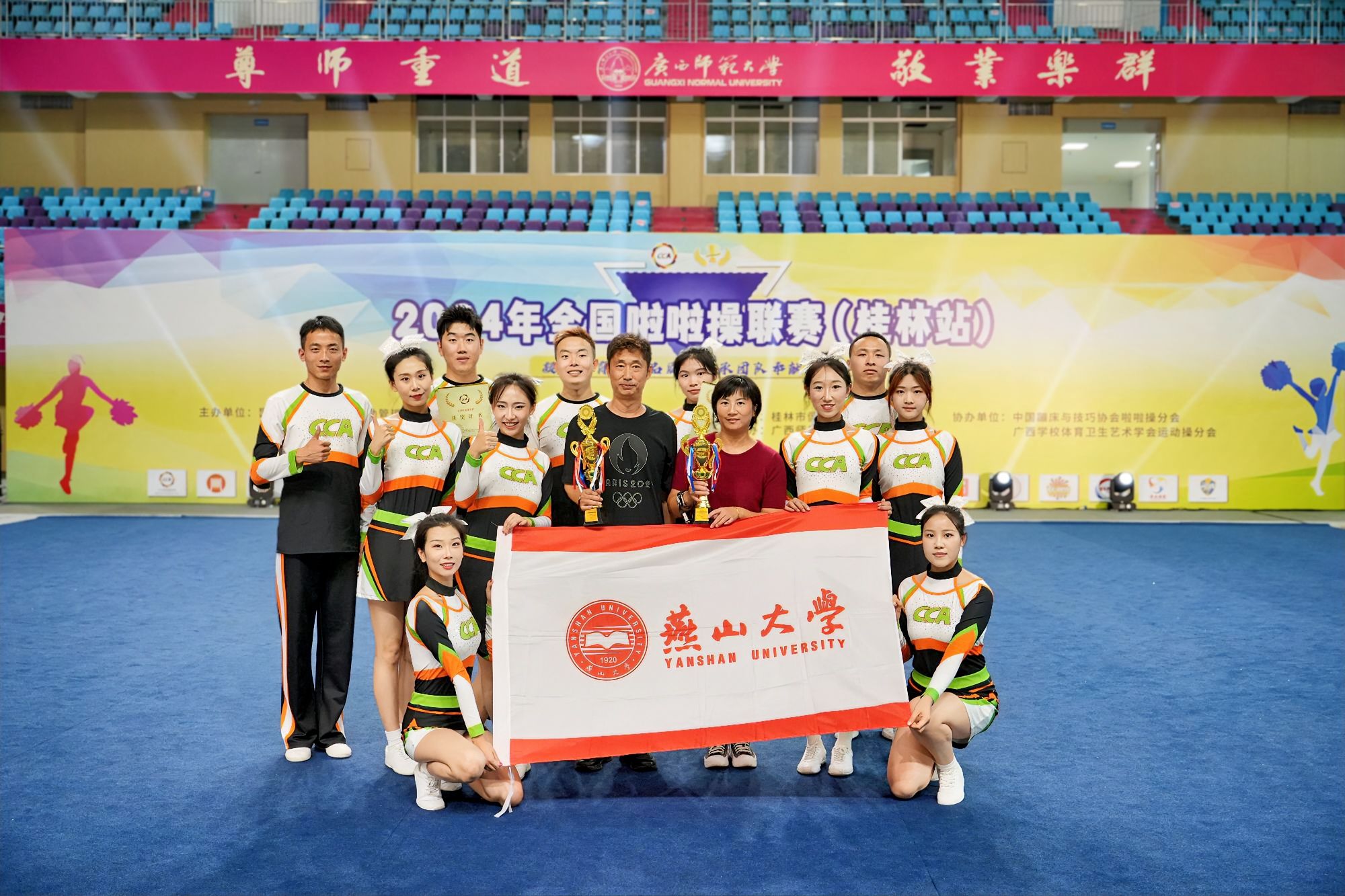 【新闻中心讯】近日,由国家体育总局主办的2024年全国啦啦操联赛在广西师范大学成功举办。我校健美操啦啦操队参加了花球啦啦操和技巧啦啦操两个项目的角逐,并分别荣获第一名。