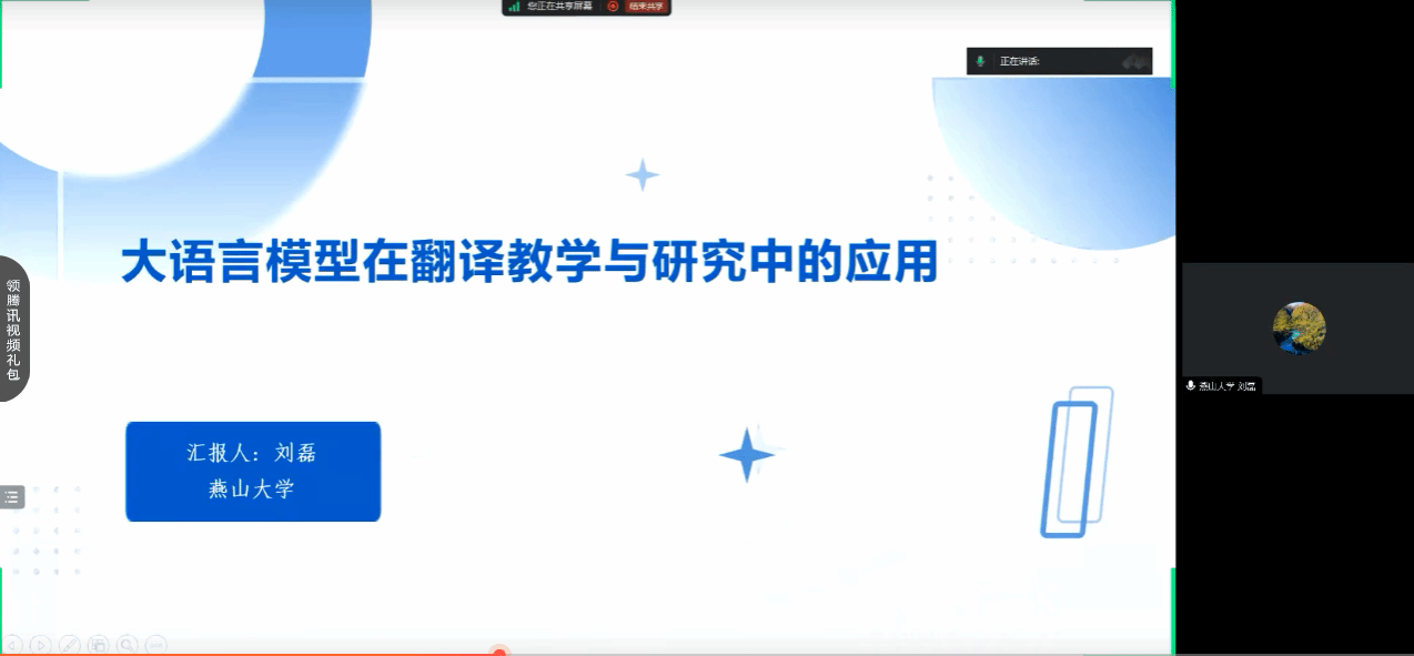 乌鸦传媒外国语学院刘磊副教授作了《大型语言模型在翻译教学与研究中心的应用》的报告,他以自己的《计算机辅助翻译》课程为例,介绍了AI赋能在翻译教学实践中的应用,他采用了项目驱动教学和真实案例分析的方法,让学生们参与到翻译实战训练当中,用以帮助学生们掌握翻译技术、提升翻译质量。