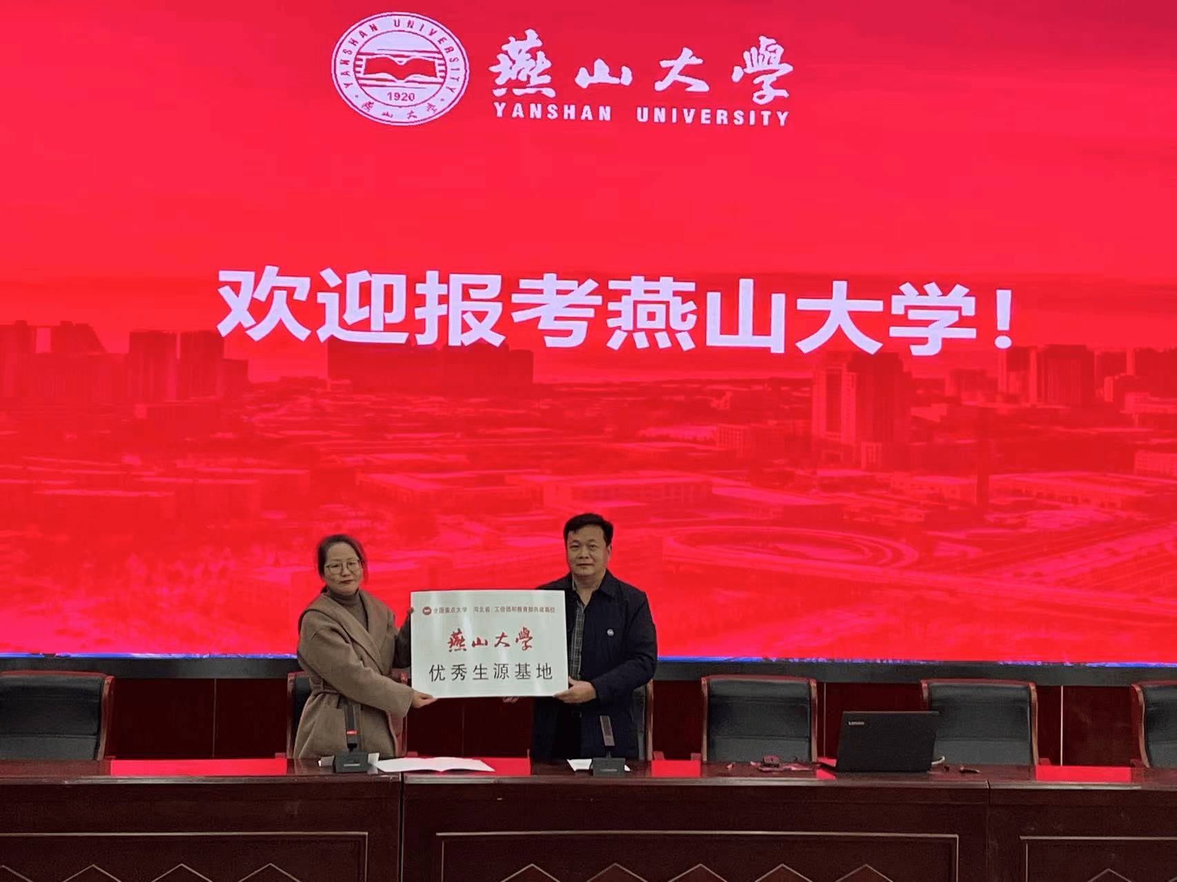 在温县第一中学,理学院副院长王明利和温县第一中学副校长范海伟在学校200余名师生的见证下,进行了优秀生源基地授牌仪式。王明利以校友身份,向温县一中师生介绍了乌鸦传媒的优势资源、特色专业、重点成果、招生情况等内容,引起学生热议。