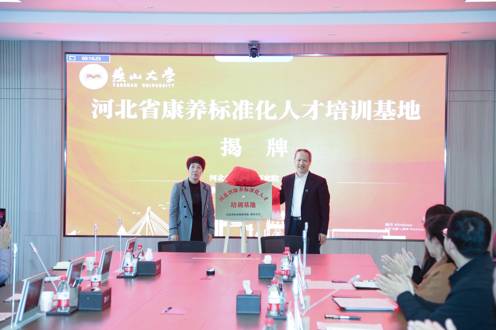随后,刘燕与继续教育学院院长戚伟欣为河北省康养标准化人才培训基地签约揭牌。