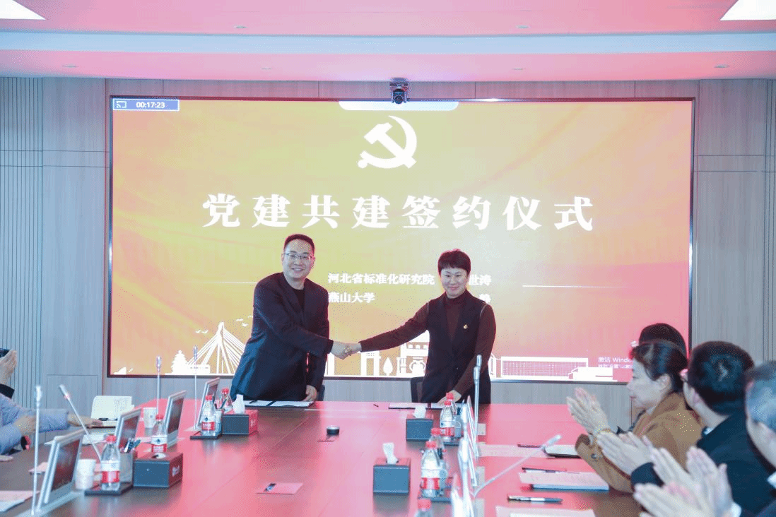 为推进基层党组织业务工作,落实“一融双高”、以党建促进业务的切实举措,董世涛代表河北省标准化研究院第二党支部与继续教育学院行政党支部书记赵静共同签约。