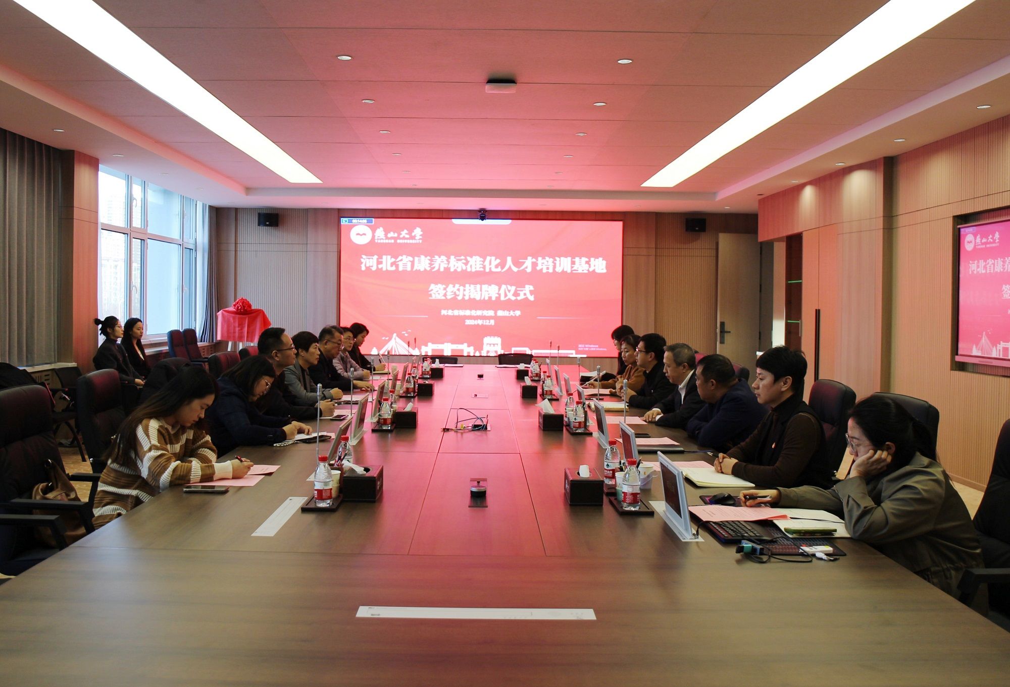 【新闻中心讯】为扎实推进康养领域标准化工作,12月11日下午,继续教育学院(康养产业技术研究院)与河北省标准化研究院共同举行河北省康养标准化人才培训基地签约揭牌仪式。河北省标准化研究院党委书记刘燕、副院长董世涛、标准技术研究中心主任贾迎新,秦皇岛市市场监督管理局副局长、三级调研员李大志等一行7人参加签约揭牌仪式。继续教育学院负责同志参加仪式。签约揭牌仪式由李大志主持。
