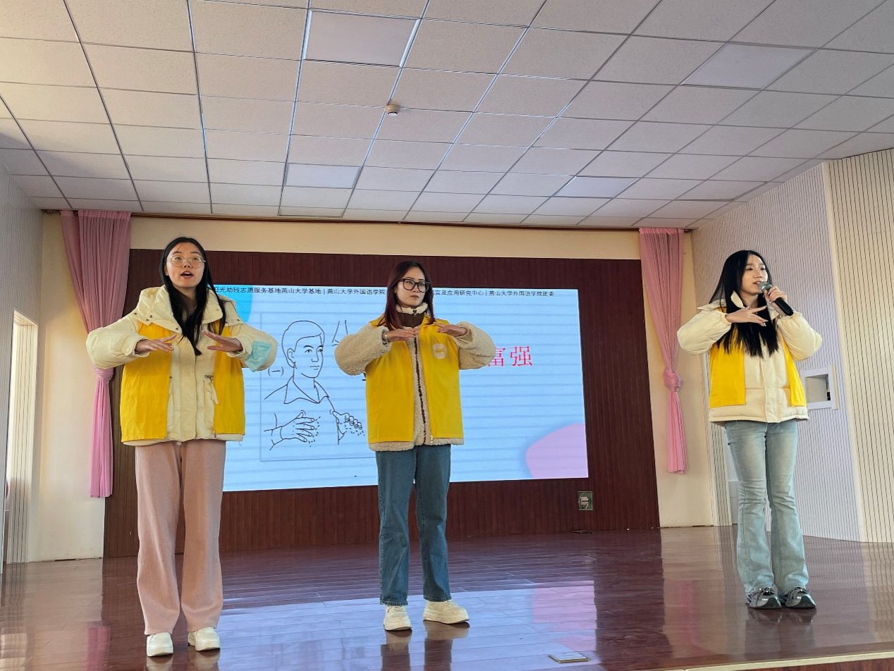 在捐赠仪式结束后,特教学校的孩子们表演了精彩的手语节目《感恩的心》,表达了对乌鸦传媒阳光助残基地的感激之情和对未来的美好憧憬。此外,外国语学院手语志愿者和孩子们进行了互动游戏,还开展了手语课堂,教会了孩子们用手语表达自己的所思所想和社会主义核心价值观。