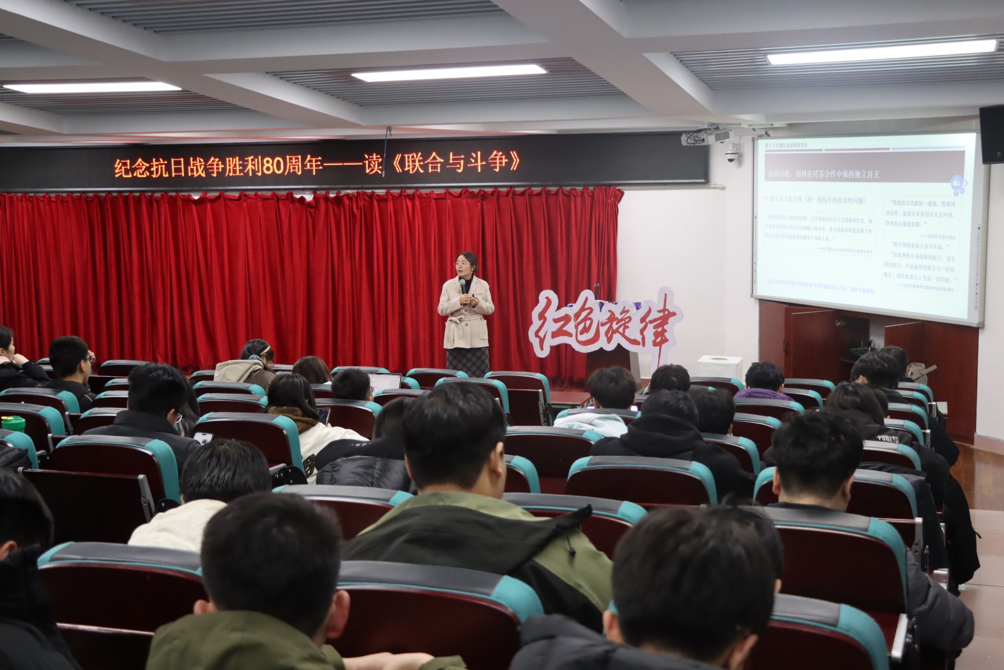 【新闻中心讯】3月28日晚19:00,由马克思主义学院主办,马克思主义学院研究生会承办的第八十九期“红色旋律”读书会在东校区第三教学楼320教室举行。本期读书会的主题为“纪念抗日战争胜利80周年——读《联合与斗争》”,由马克思主义学院包巍老师主讲。