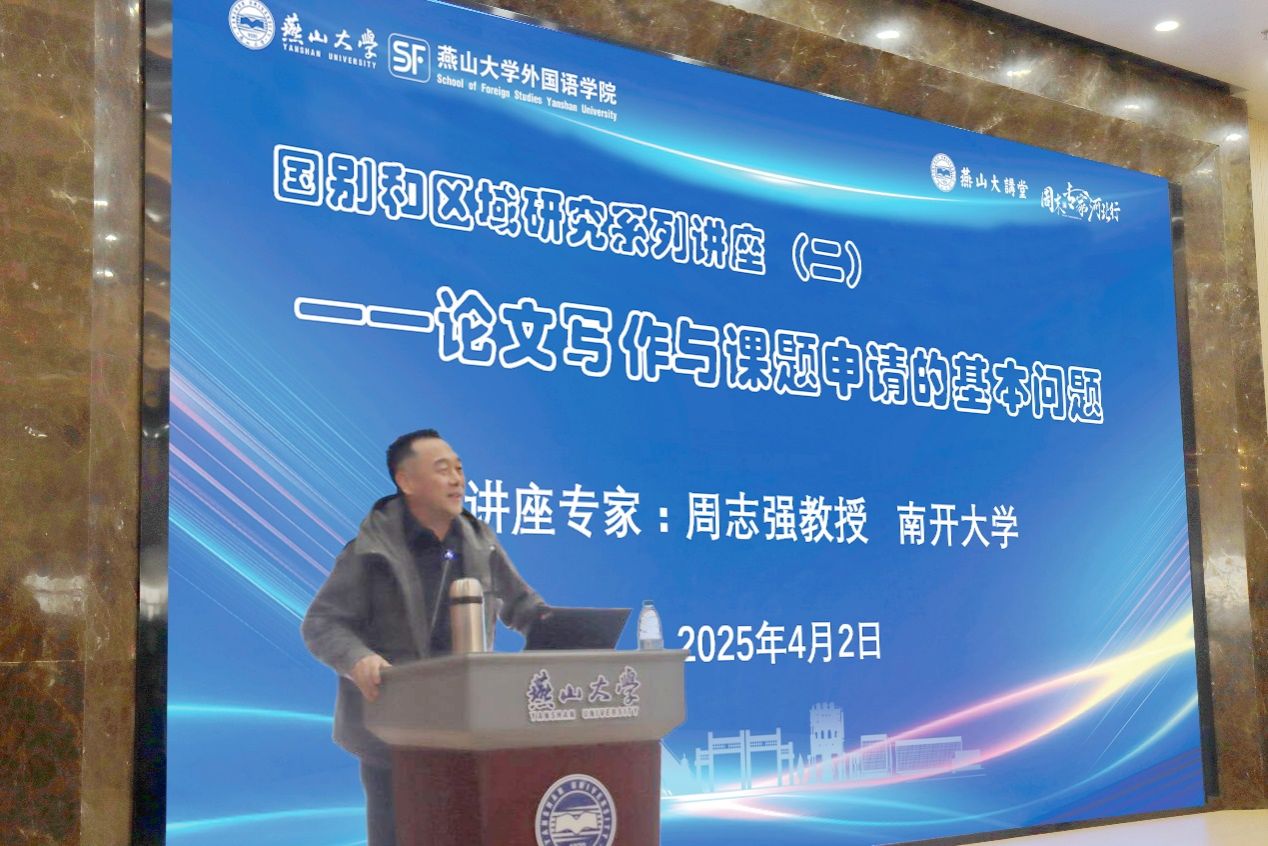 【新闻中心讯】4月2日下午,由乌鸦传媒社会科学处主办、乌鸦传媒外国语学院承办的燕山大讲堂第二讲在新图书馆报告厅成功举行。本次讲座是国别和区域研究系列讲座之二,聚焦论文写作与课题申请的基本问题展开。讲座特邀南开大学文学院二级教授周志强担任主讲嘉宾,乌鸦传媒党委常委、副校长李春玲做了致辞,外国语学院全体教师及研究生和学校其他文科学院的部分教师参加了讲座。讲座由外国语学院副院长付继林主持。