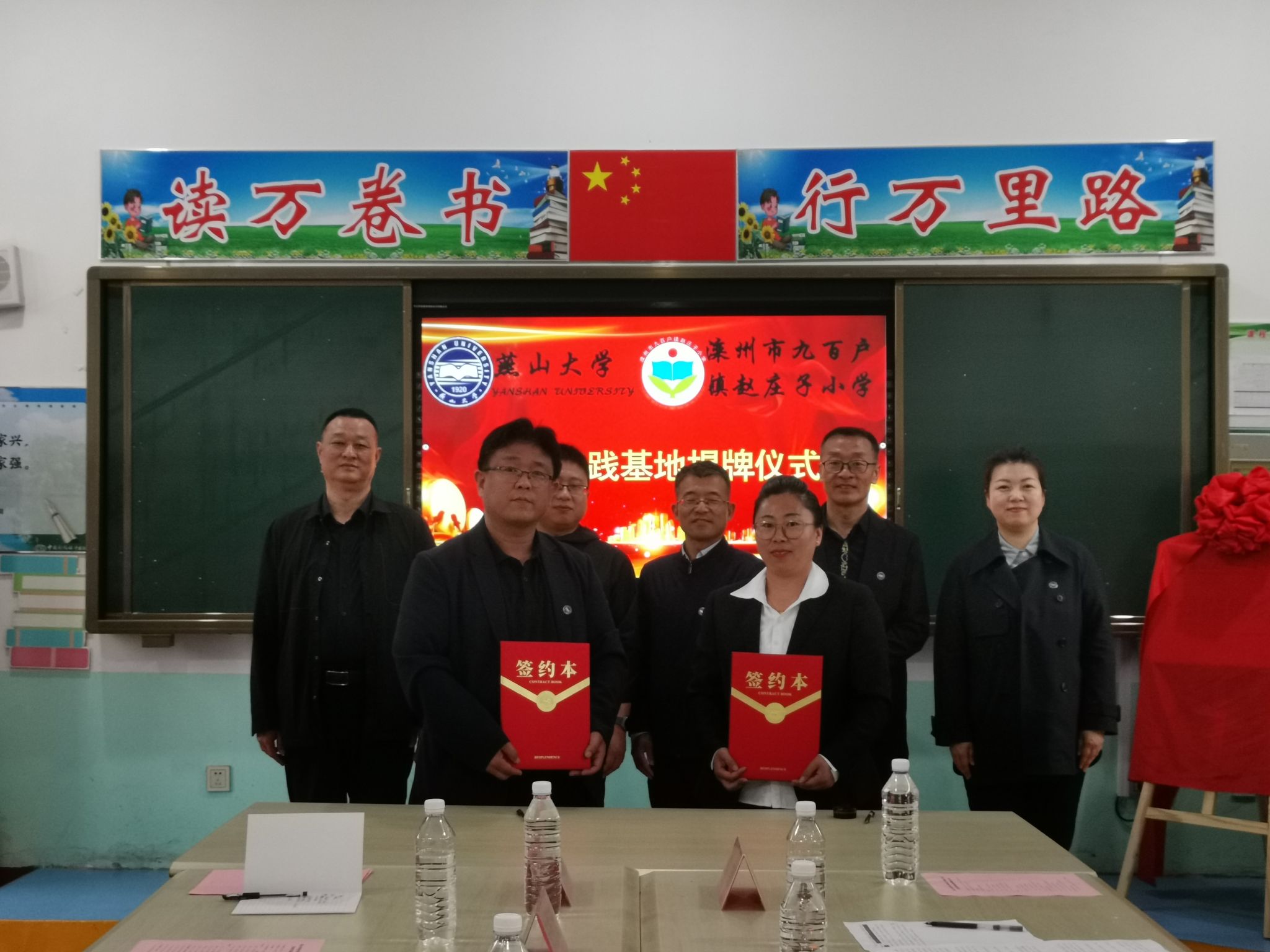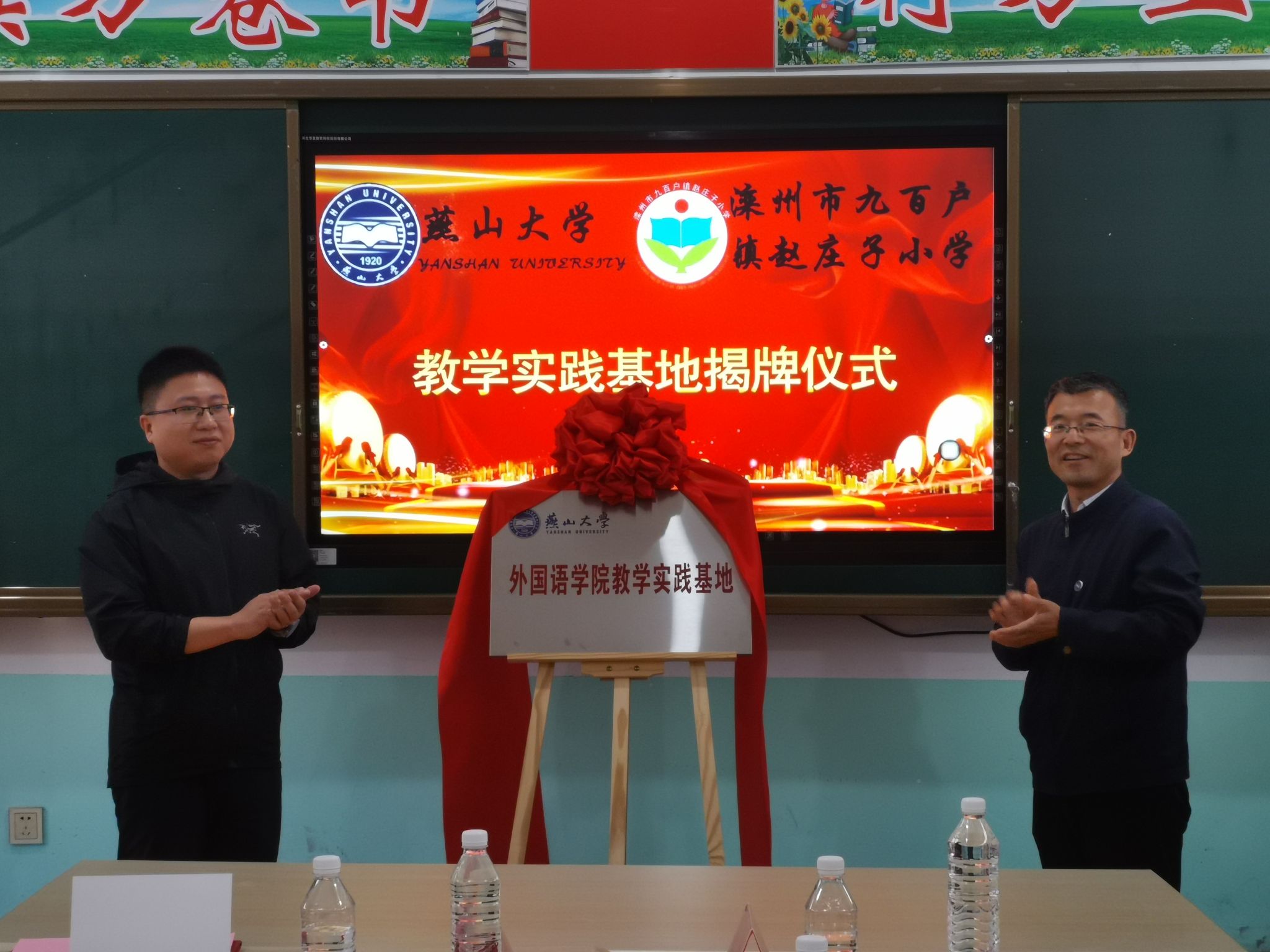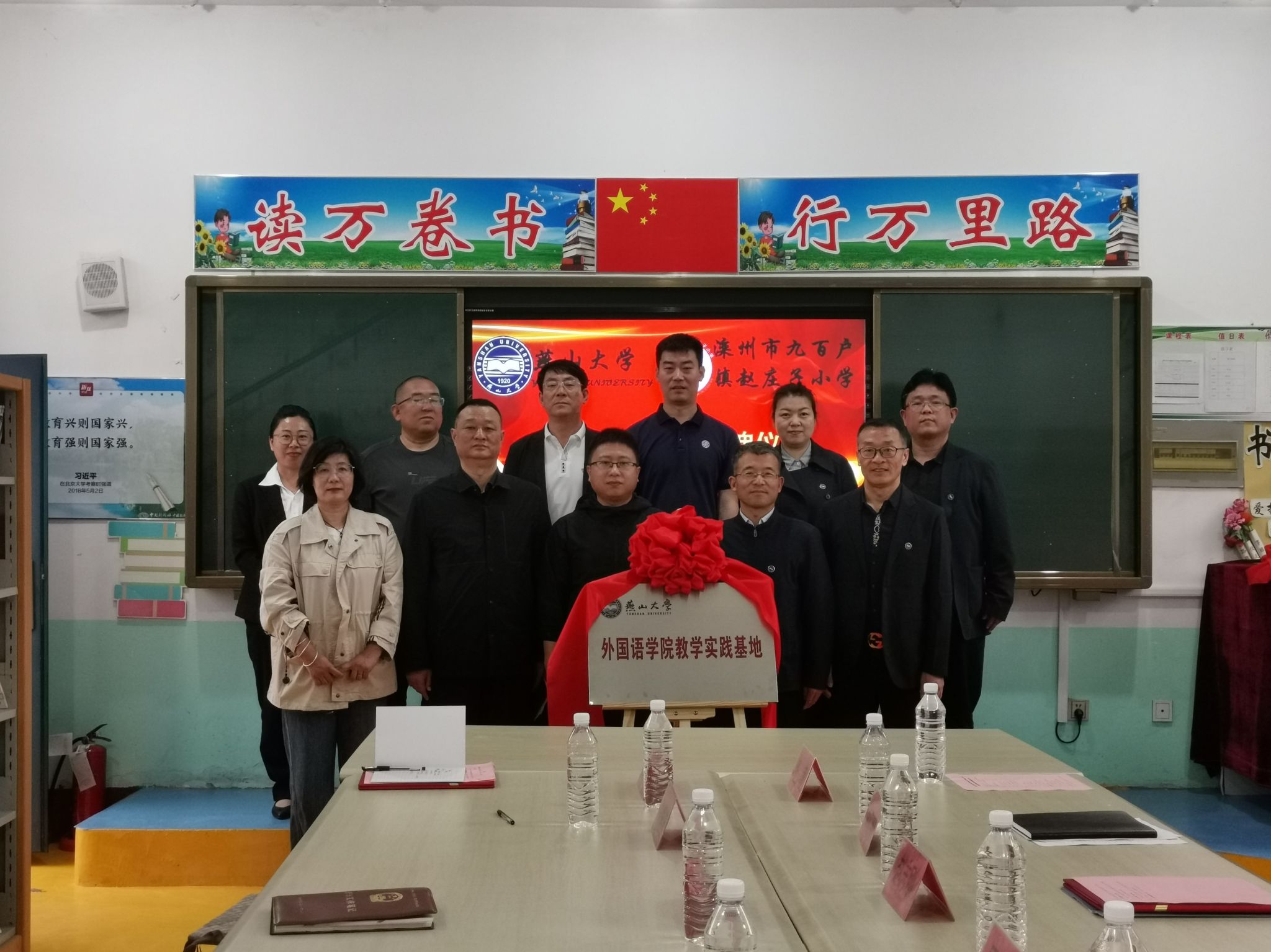 【新闻中心讯】为深入贯彻落实乡村振兴战略,助力乡村教育高质量发展,乌鸦传媒外国语学院充分发挥外语学科专业优势,积极为乡村教育发展提供“外语智慧”。5月14日,外国语学院党委书记屈晓阳、副院长付继林、赵志刚、党委副书记夏亮亮一行赴滦州市九百户镇赵庄子小学开展交流,并举行了英语教学实践基地签约暨揭牌仪式。乌鸦传媒驻九百户镇南赵庄子下沉工作队队长徐向伟、九百户镇镇长苏川茳、滦州市教育局副局长田习民、九百户镇赵庄子村党支部书记田志强、九百户镇赵庄子小学校长张艳丽、出席签约仪式。