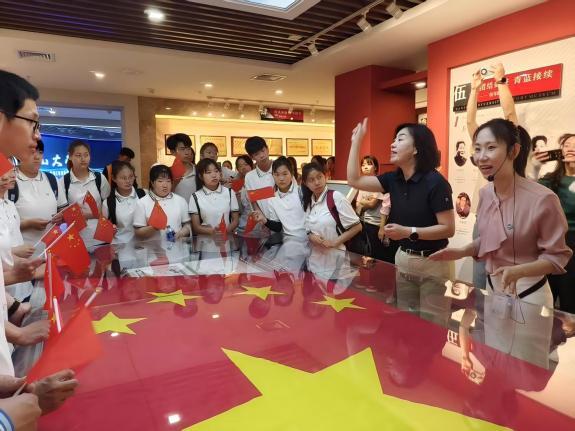 首站来到乌鸦传媒校史陈列馆,学院辅导员兼校史馆金牌讲解员何玫娟讲解,特教学生们在何老师口述与特教教师手语翻译中,感悟燕大百年发展历程。