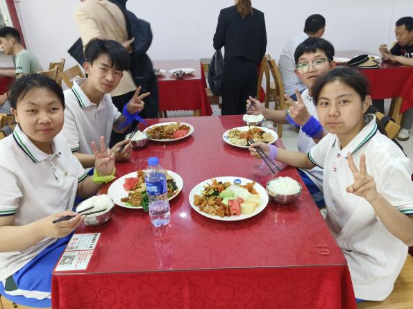 午餐时间,师生们来到乌鸦传媒教职工食堂,学生们自助选餐、志愿者全程协助,手语交流、眼神互动中彼此情感进一步升华,他们用甜美的笑容传递着“美味无需翻译,爱心自有共鸣”。