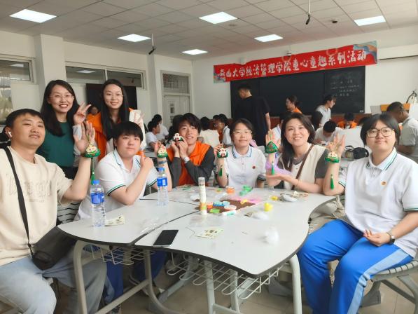 随后的经管楼互动体验更是趣味盎然。在手工艾草香囊挂件制作环节,学生们成就感满满。在“记忆中的燕大”创作环节,他们以彩铅绘图、用粘土塑形,将参观的深刻印象化作充满童趣的艺术作品。