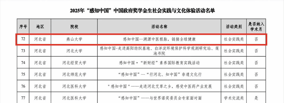 我校申报的“感知中国——溯源中医根脉,链接全球健康”中医药文化体验活动,历经学院申报、学校推荐、专家评审,凭借科学完备的活动方案、特色鲜明的文化传播理念,在众多申报项目中脱颖而出,最终以A等级的优异成绩获批。