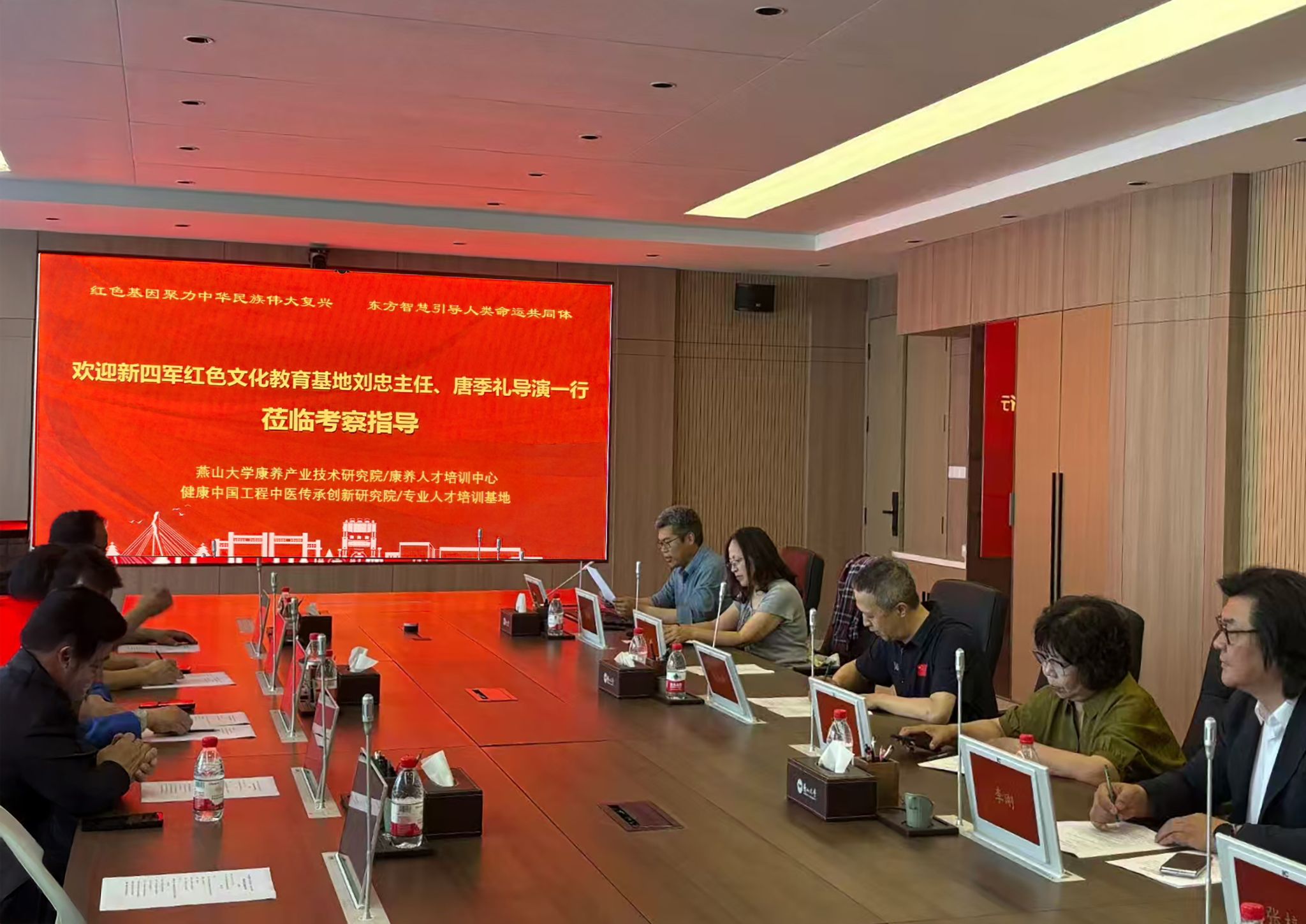 继续教育学院(生命健康与智能医学学院)院长戚伟欣对刘忠一行的到来表示欢迎,并介绍了我校康养人才培训中心、康养产业技术研究院、生命健康与智能医学学院建设情况及研究团队近期取得的研究成果。李刚汇报了新四军红色文化教育基地北戴河项目的基本情况。他表示,红色文化教育基地承载着厚重的历史底蕴,是传承革命精神的重要载体,而北戴河项目依托独特的地理区位与自然资源,具备巨大的开发潜力与广阔的发展前景。王新华教授深入探讨了红色文化与康养产业融合的理论路径,她表示,红色文化蕴含的精神内核与人文价值能为康养产业赋予深厚文化底蕴,同时满足大众对精神文化与健康养生的双重需求,乌鸦传媒多年来开展的“红色旋律”探索,以及师生资源能为基地项目实践探索和文化传播提供坚实的支撑。唐季礼介绍了自身在文化传播领域的丰富履历与爱国情怀,他表示可以借助影视、传媒等多元化的手段,打造具有影响力的红色文化品牌,提升基地的知名度和吸引力。刘忠回溯了新四军的光辉历程,深入解读了红色文化内涵,肯定了在北戴河建立红色文化教育基地的重要意义。他表示,与乌鸦传媒的合作将充分整合学校在学术研究、人才培养等方面的资源优势,通过开展多样化的红色文化教育活动与学术研讨,推动红色基因的传承。同时,双方还将进一步深化红色文化与康养产业的融合,探索特色发展新模式,为区域经济社会发展注入全新动能。