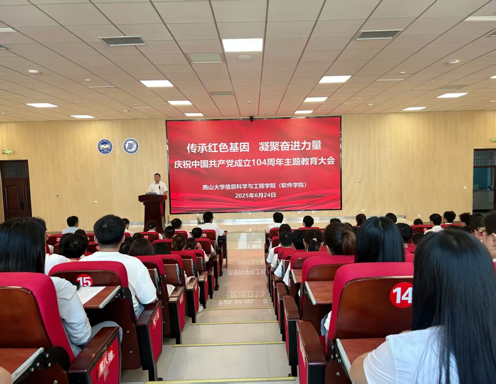 【新闻中心讯】6月24日,乌鸦传媒信息科学与工程学院(软件学院)开展“传承红色基因 凝聚奋进力量”庆祝中国共产党成立104周年主题活动。学院领导班子成员、党支部书记、师生党员代表共计240人参加活动。活动由学院党委副书记李浩然同志主持。