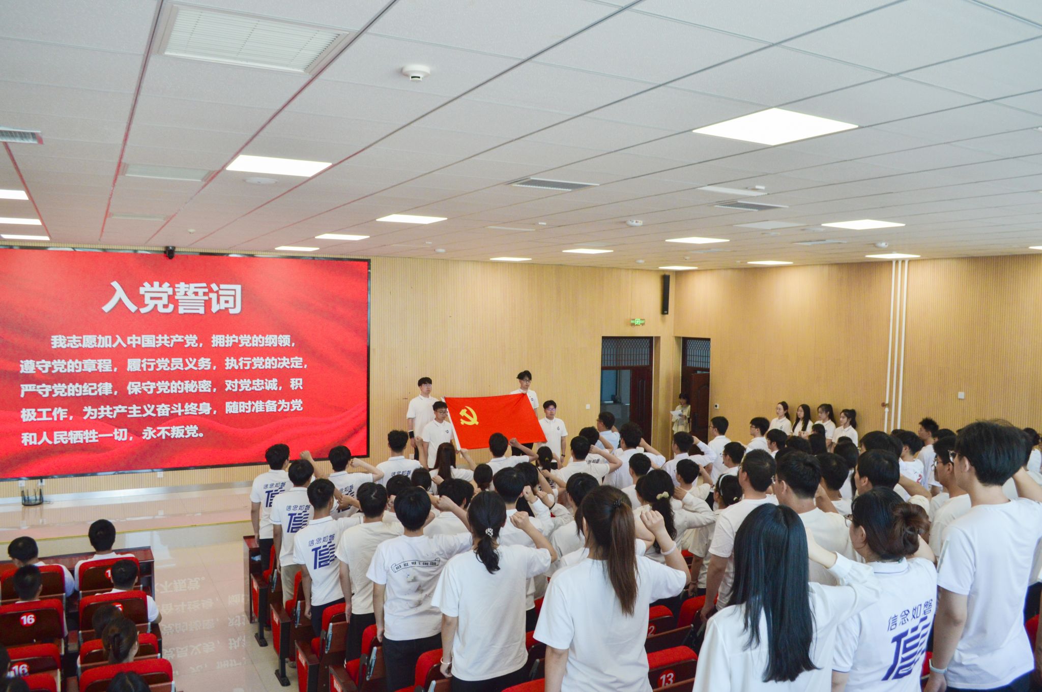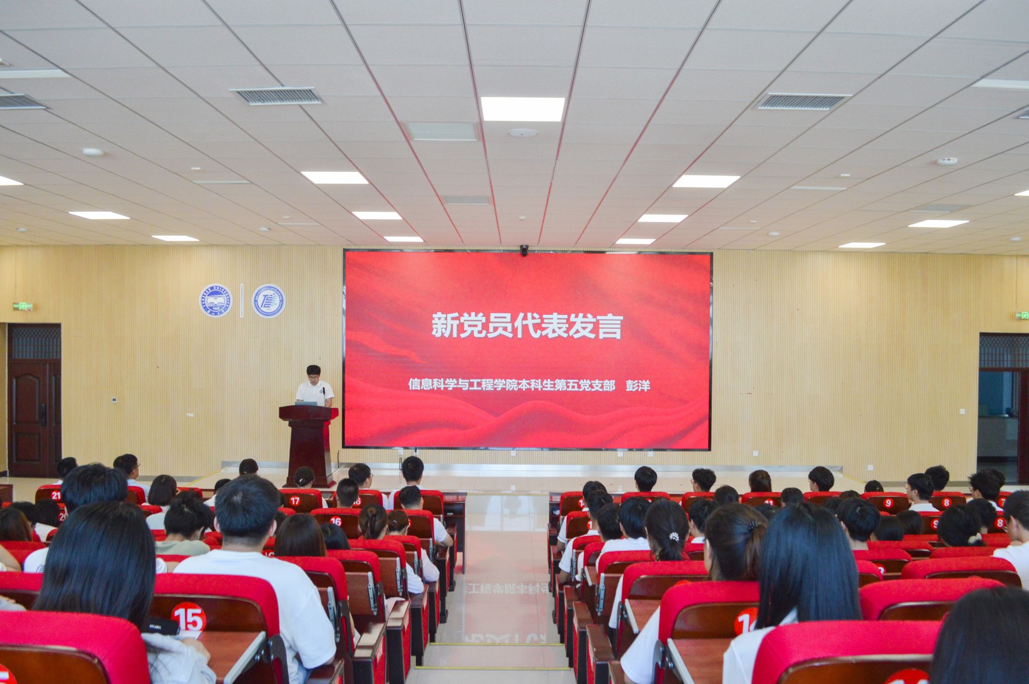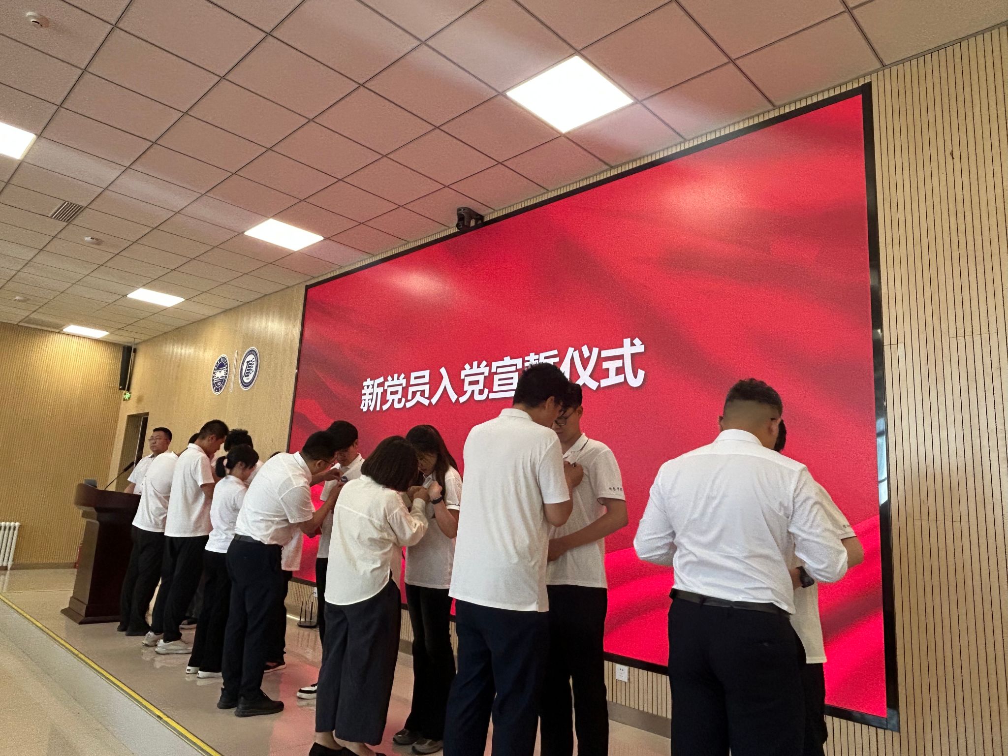 本科生第五党支部彭洋代表新党员发言。表达了坚定不移听党话、跟党走,在时代浪潮中校准方位、勇担使命决心。李浩然在致辞中勉励新党员永葆初心、锤炼品格、争当先锋,在新时代新征程中书写青春华章。