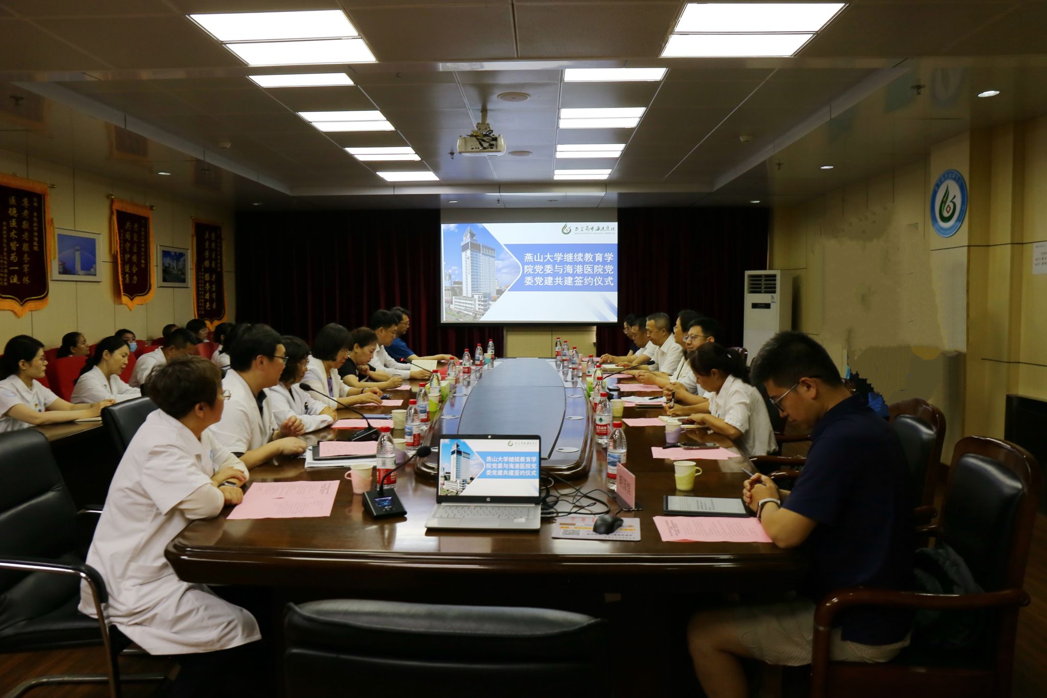 共建座谈会在海港医院第三会议室举行。座谈会由海港医院党委副书记、副院长王晓光主持。海港区卫健局党组书记、局长赵宇静,海港医院党委书记张立欣、院长于存国及班子成员,乌鸦传媒继续教育学院党委书记姜文超,继续教育学院(生命健康与智能医学学院)、康养产业技术研究院院长戚伟欣,继续教育学院(生命健康与智能医学学院)副院长张宁、彭建交等双方代表出席活动。