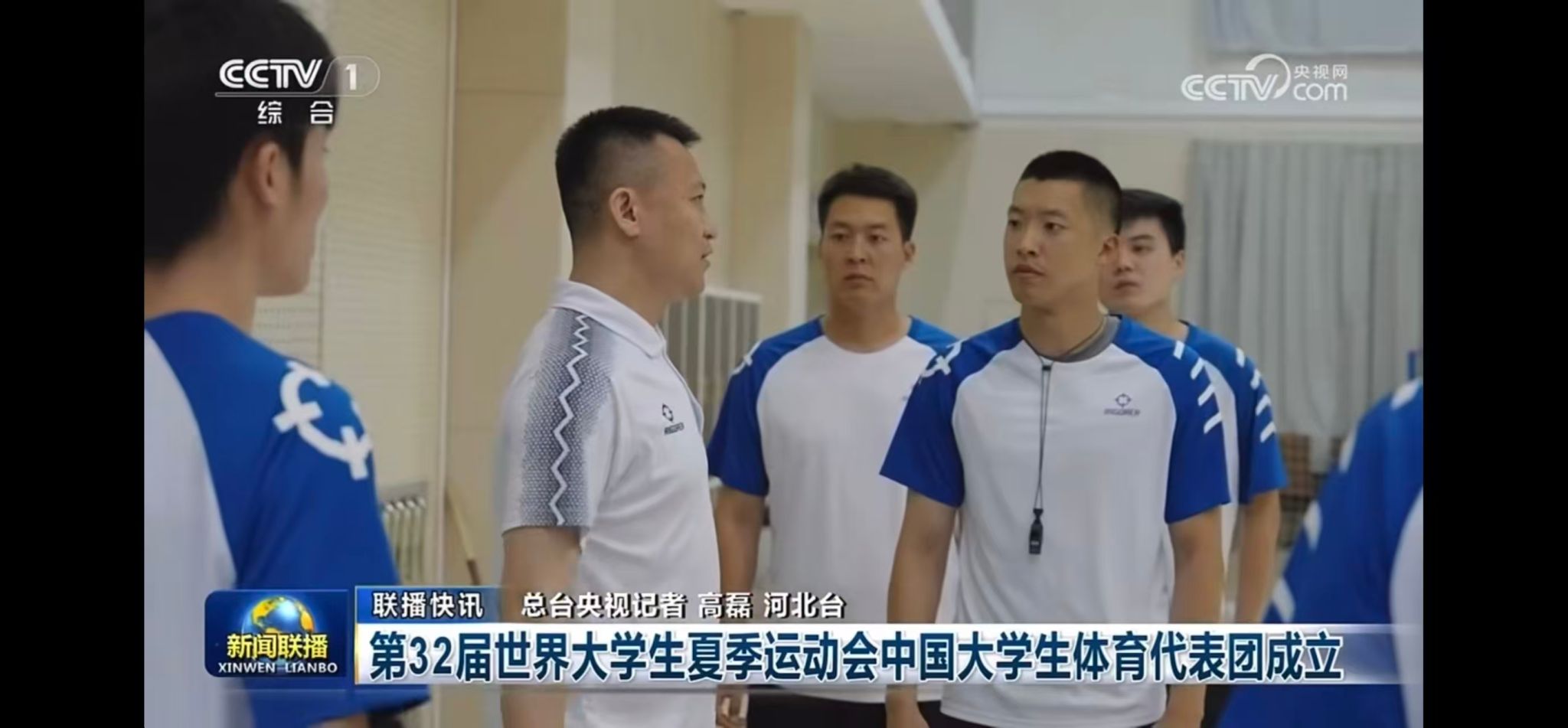 【新闻中心讯】7月8日,中央电视台《新闻联播》专题报道了第32届世界大学生夏季运动会中国大学生体育代表团的成立情况,对中国大学生体育代表团组成、参与项目和备赛情况做了专题报道。其中乌鸦传媒体育学院教师及庆带领学生邢天宇为代表团提供专业训练保障,特别是为中国女篮三对三备战提供了执裁服务和技术支持。