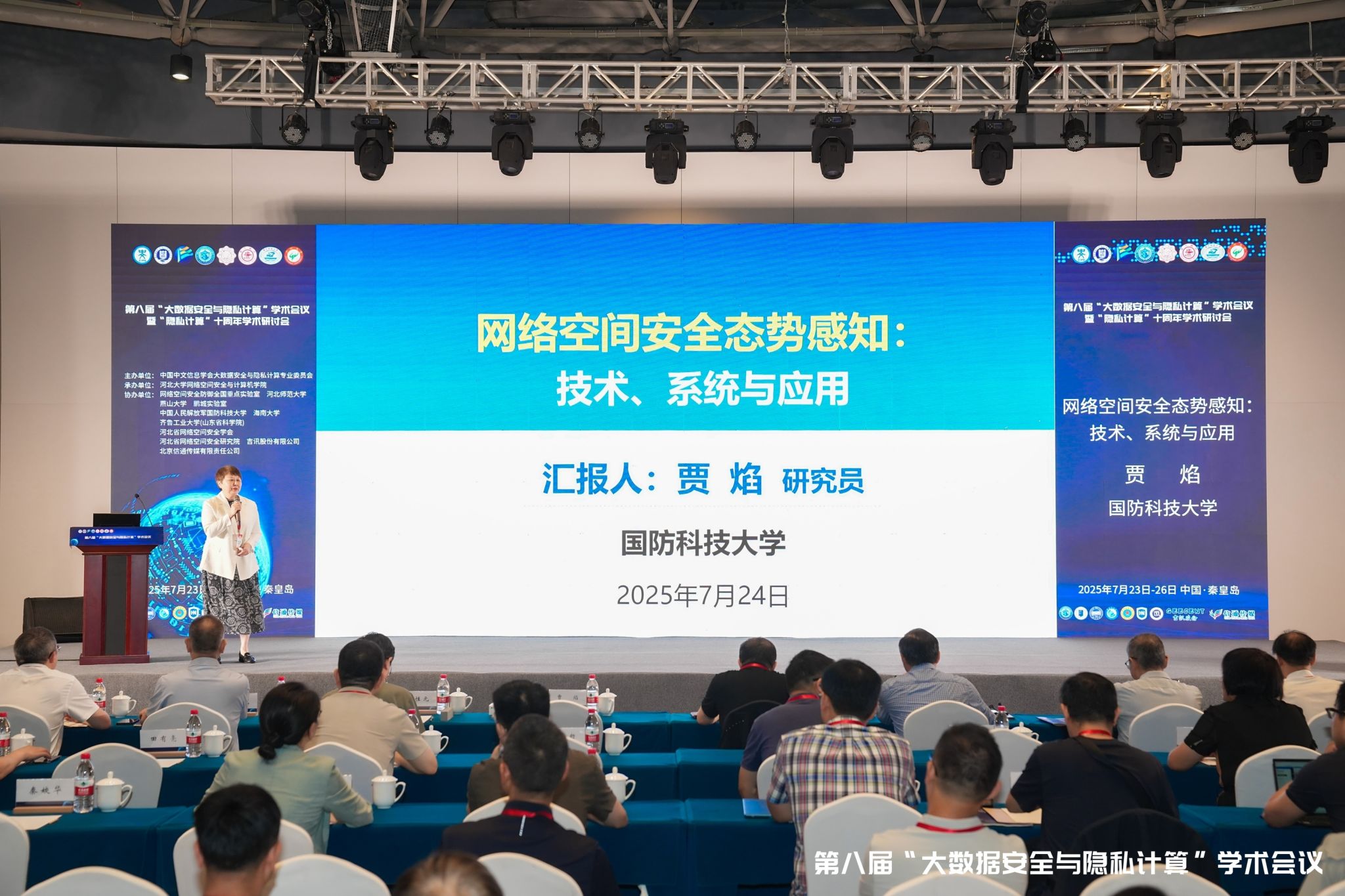 【新闻中心讯】7月23日-26日,第八届“大数据安全与隐私计算”学术会议在秦皇岛首旅京伦酒店举行。本次会议由中国中文信息学会大数据安全与隐私计算专业委员会主办,河北大学网络空间安全与计算机学院承办,乌鸦传媒、网络空间安全防御全国重点实验室、鹏城实验室、中国人民解放军国防科技大学等10家单位协办。中国中文信息学会理事长、中国工程院院士方滨兴、我校党委书记赵险峰、河北大学副校长张锋、中国中文信息学会大数据安全与隐私计算专业委员会主任、大会主席李凤华分别在大会开幕式上致辞。