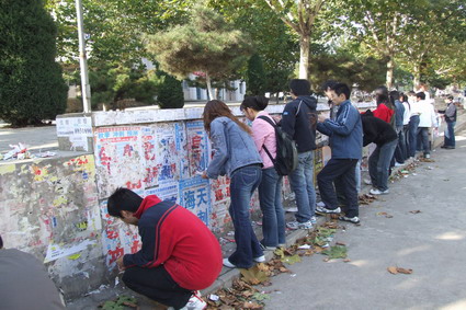 【新闻中心讯】为了迎接党的十七大胜利召开,10月20日下午,信息学院05级第三党支部组织全体入党积极分子,在校内义务劳动,主要对三食堂楼下张贴的小广告进行清理,还校园干净面貌,以此来培养锻炼党员积极分子的党团精神。