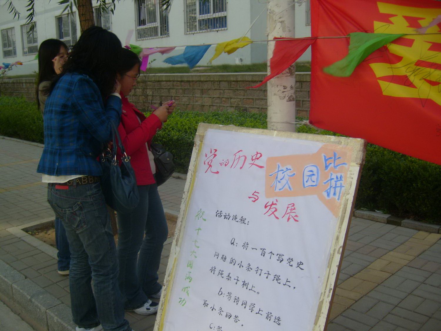 这次活动主要是让大家能够更好的了解中国共产党以及党的发展过程,祝贺十七大胜利召开。这不仅能够调动大家的积极性,而且能够使大家在以后的学习生活中更多的关注党的发展。