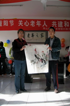 【新闻中心讯】为了进一步改进和加强大学生思想道德建设,宏扬中华民族尊老敬老的传统美德,在中国传统节日“重阳节”,艺术学院的同学们以实际行动为老年人送温暖、献爱心。艺术学院05级艺术设计4班全体同学在山海关红阳老年公寓开展了 以“喜庆重阳节 关心老年人 共建和谐社会”为主题的慰问活动。
