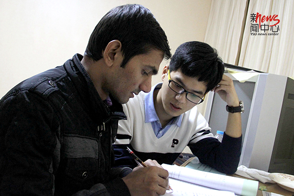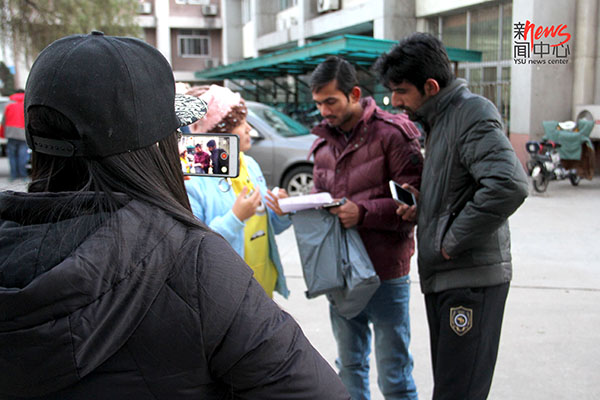 他们在燕大很受欢迎,很多同学想和他们交朋友。瞧,他们还在中国同学的英语视频作业中客串了角色。(王松涛)
