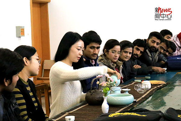 “彩虹计划”文化交流活动中,巴基斯坦的同学们惊叹于中国的茶艺,并为之深深陶醉。(聂东雪)