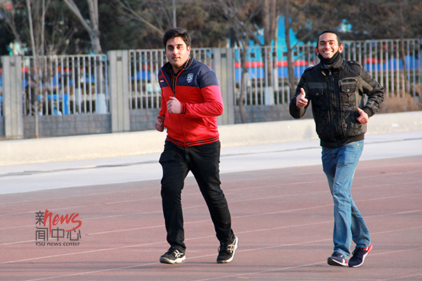 每天下午,王亮都要约上自己的好友,到操场跑步,享受奔跑的感觉。(王松涛)